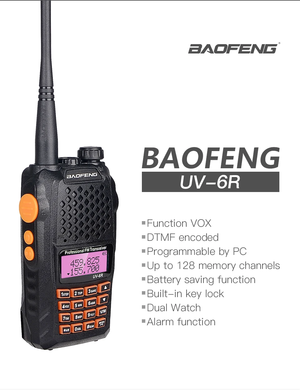 Портативная портативная рация Baofeng UV-6R Walkie Talkie FM 128CH Ham СВЧУВЧ-трансивер Dual UV 6R Walky Talky с ручным управлением, двухсторонняя радиостанция