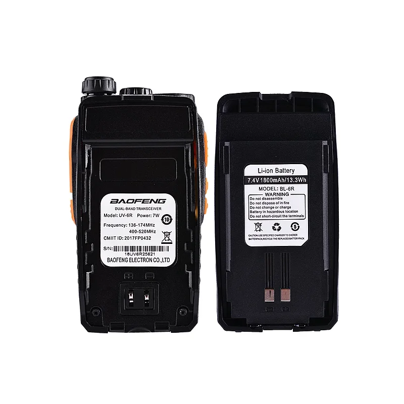 Посылка включает:1 x UV-6R (двухдиапазонный УКВ: 136-174 МГц УВЧ: 400-520 МГц)1x7,4 V 1800mah литий-ионный аккумулятор1 x Антенна1 x Зажим для ремня1 х РуководствоЗарядное устройство-1 шт.