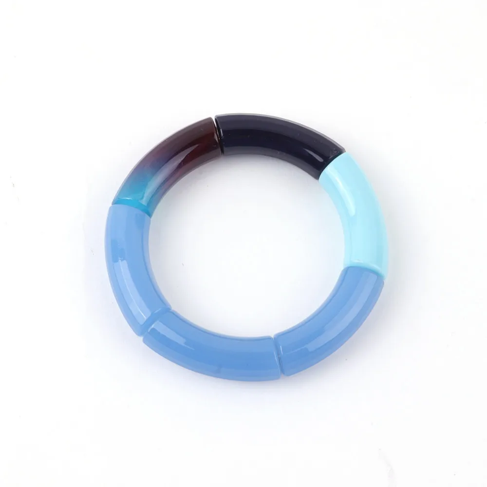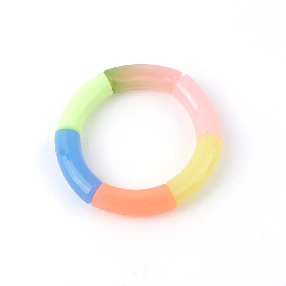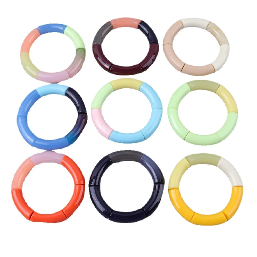 Летние браслеты из бамбуковых трубок, изогнутые, на руку, акриловые разноцветные бусины, эластичные браслеты, для женщин, девочек, гранж