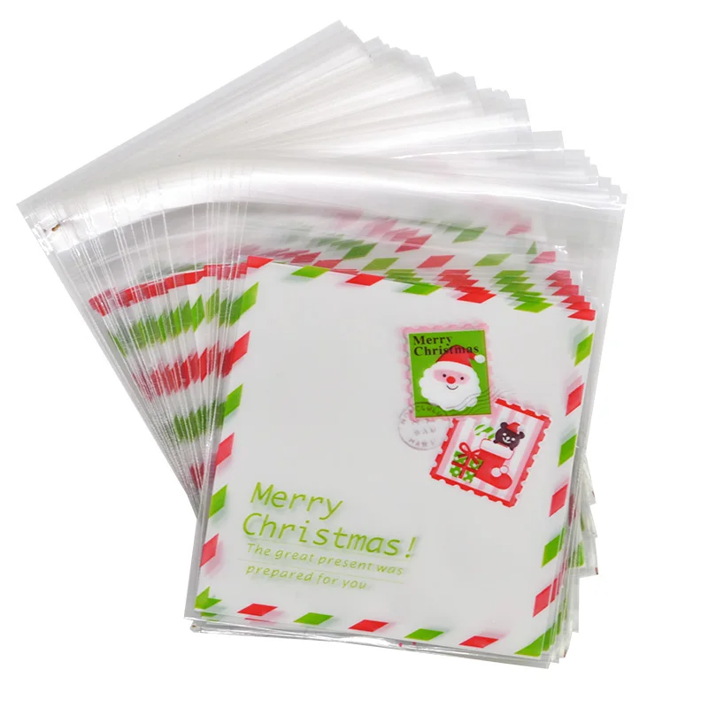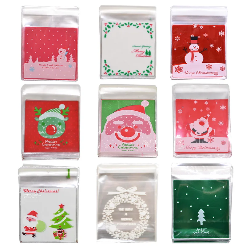 Рождественские подарочные пакеты для конфет, печенья, 10 см, Пластиковые самоклеящиеся пакеты для упаковки печенья, закусок, Мультяшные украшения для свадебной вечеринки, сувениры