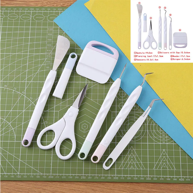 Состояние на 100% абсолютно новый и высокое качествоМатериал: углеродистая стальСоответствие единиц измерения: 1 см = 0,39 дюйма/1 дюйм = 2,54 смПосылка включает в себя:1x ножницы с высокоточной обработкой1 шпатель1 пинцет1x инструмент для прополки1x инструмент для соскабливания1 шт. инструментФункции: необходимые инструменты, необходимые для подъема, обрыва, обрыва и засорения широкого спектра материалов. Идеально подходит для виниловых, бумажных, железных проектов и многого другого.