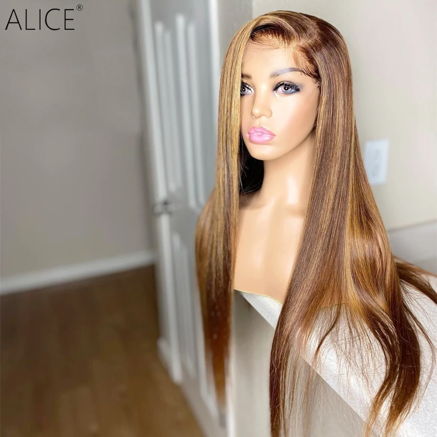 ALICE 13x4 прямые Выделенные человеческие волосы с кружевной передней частью человеческие волосы плотность Wig180 бразильские с предварительно выщипанными без Реми для женщин