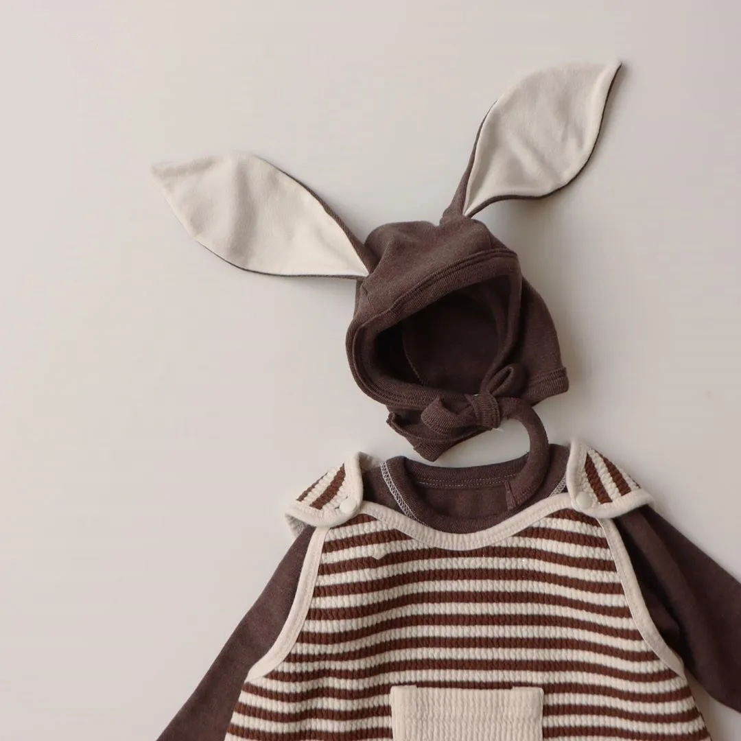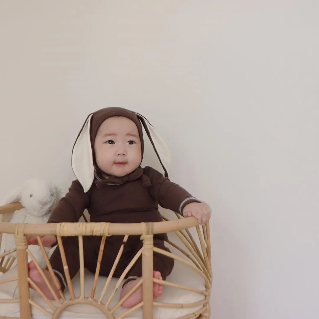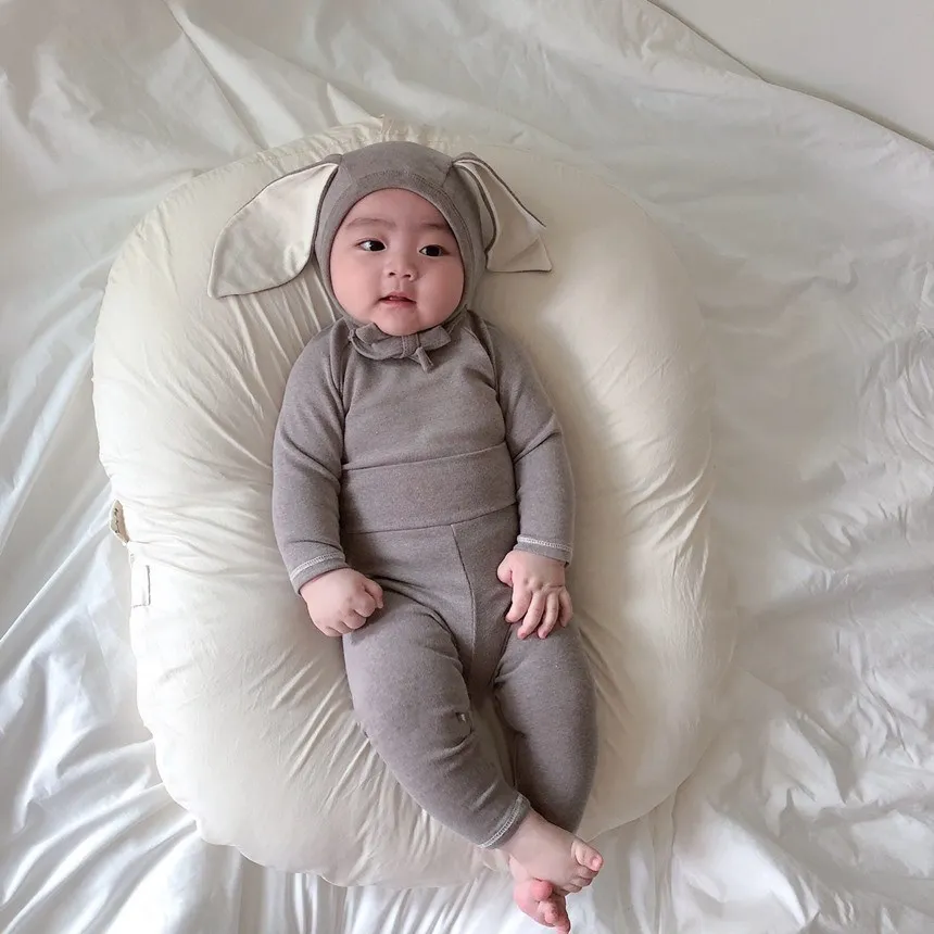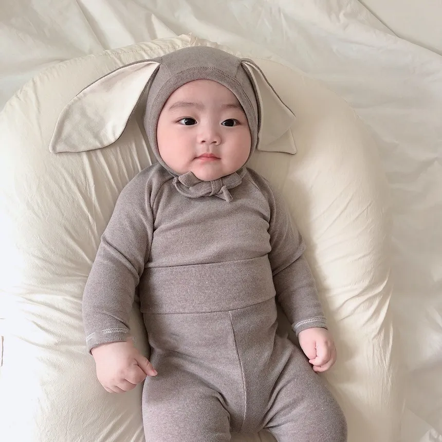 Осенний комплект одежды для новорожденных девочек, боди с длинными рукавами + леггинсы, штаны с заячьими ушками, 3 предмета, домашняя одежда для малышей, Детский Повседневный костюм