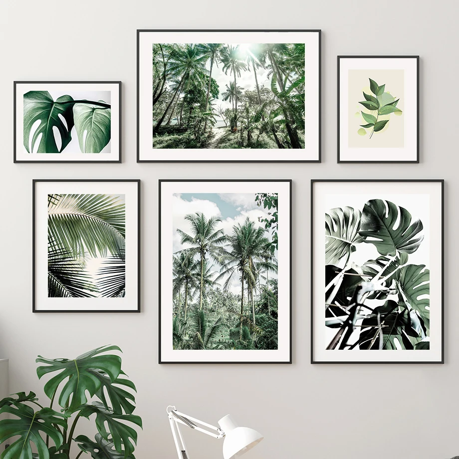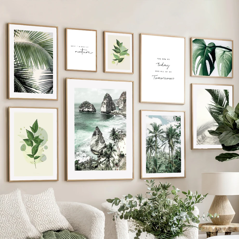 Тропические береговые джунгли кокосовое дерево листья настенная Картина на холсте скандинавские плакаты и принты настенные картины для гостиной