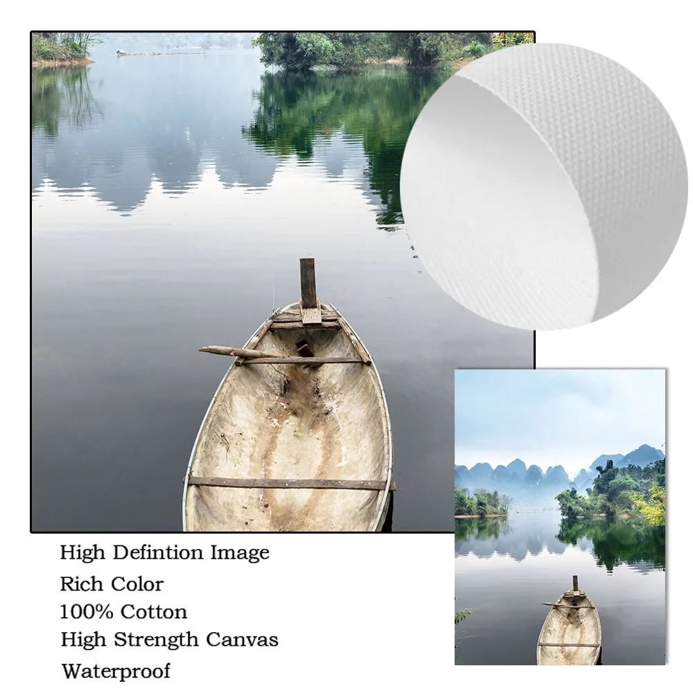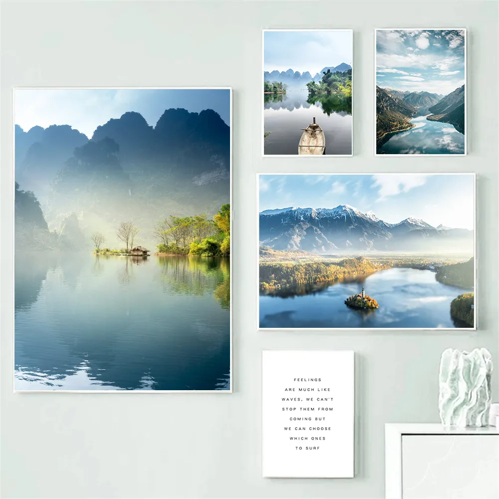 Настенный постер на холсте с изображением озера, лодки, пейзажа, гор, реки, природы, живопись, настенные картины в скандинавском стиле, современный декор для гостиной