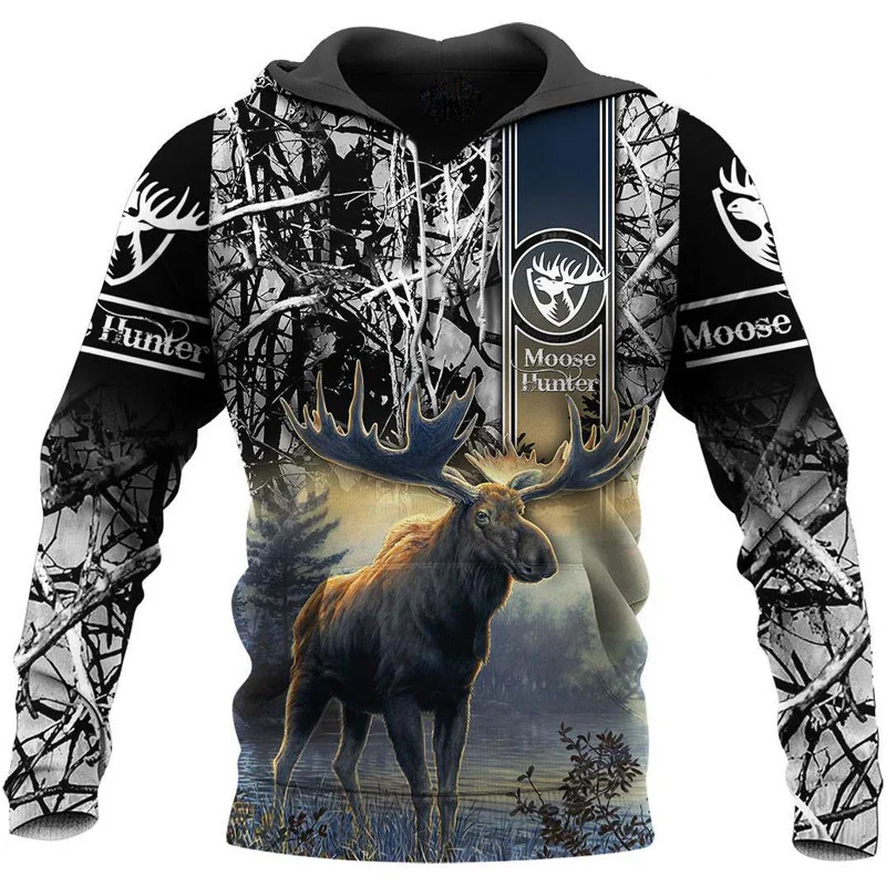 Мужские толстовки унисекс с 3d принтом оленя и охоты, свитшоты в ст...