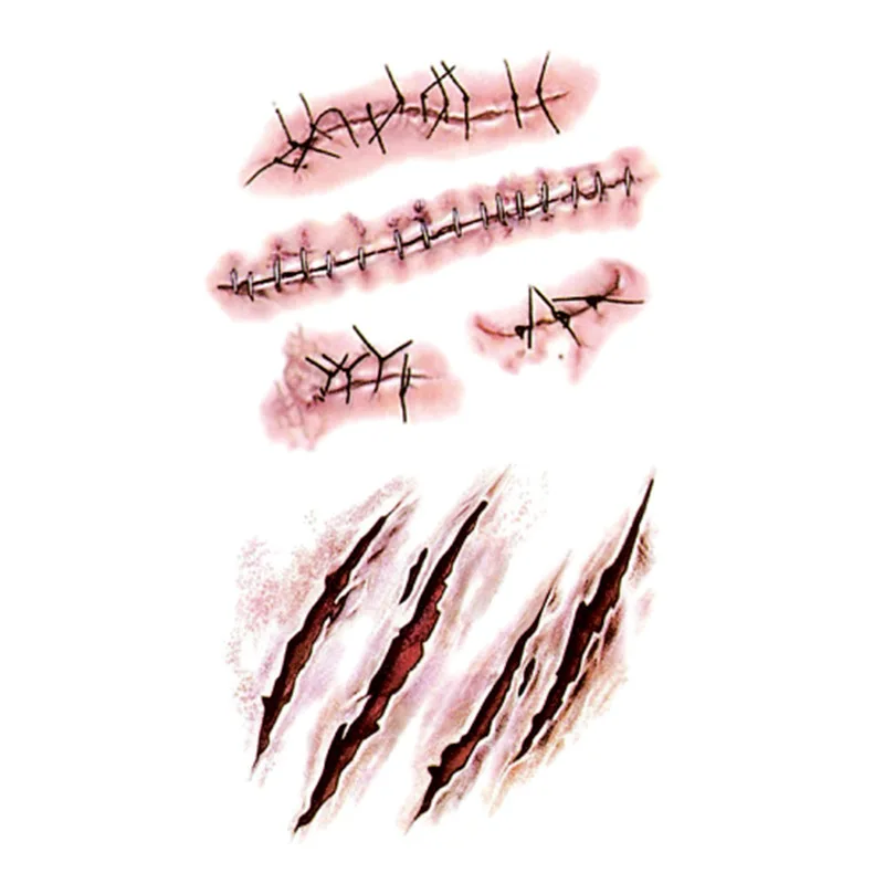 Макияж тела татуировки наклейки Хэллоуин террор реалистичные сшитые повреждения ран нетоксичные длительное время временные татуировки наклейки