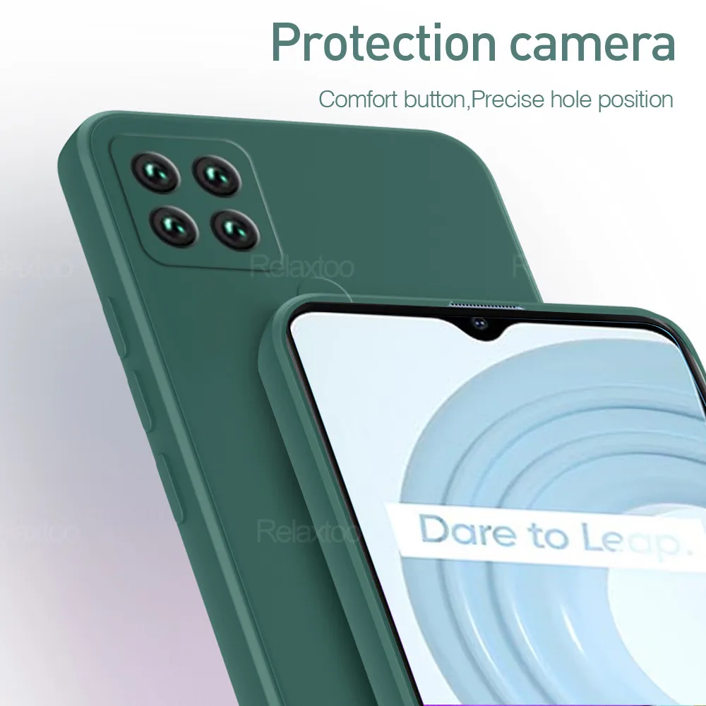 Квадратный чехол из жидкого силикона для Realme C21 C11 2021 C20 C25 C12 C15 C 21 11 20 25 12 15 Ударопрочный Мягкий чехол для телефона с камерой