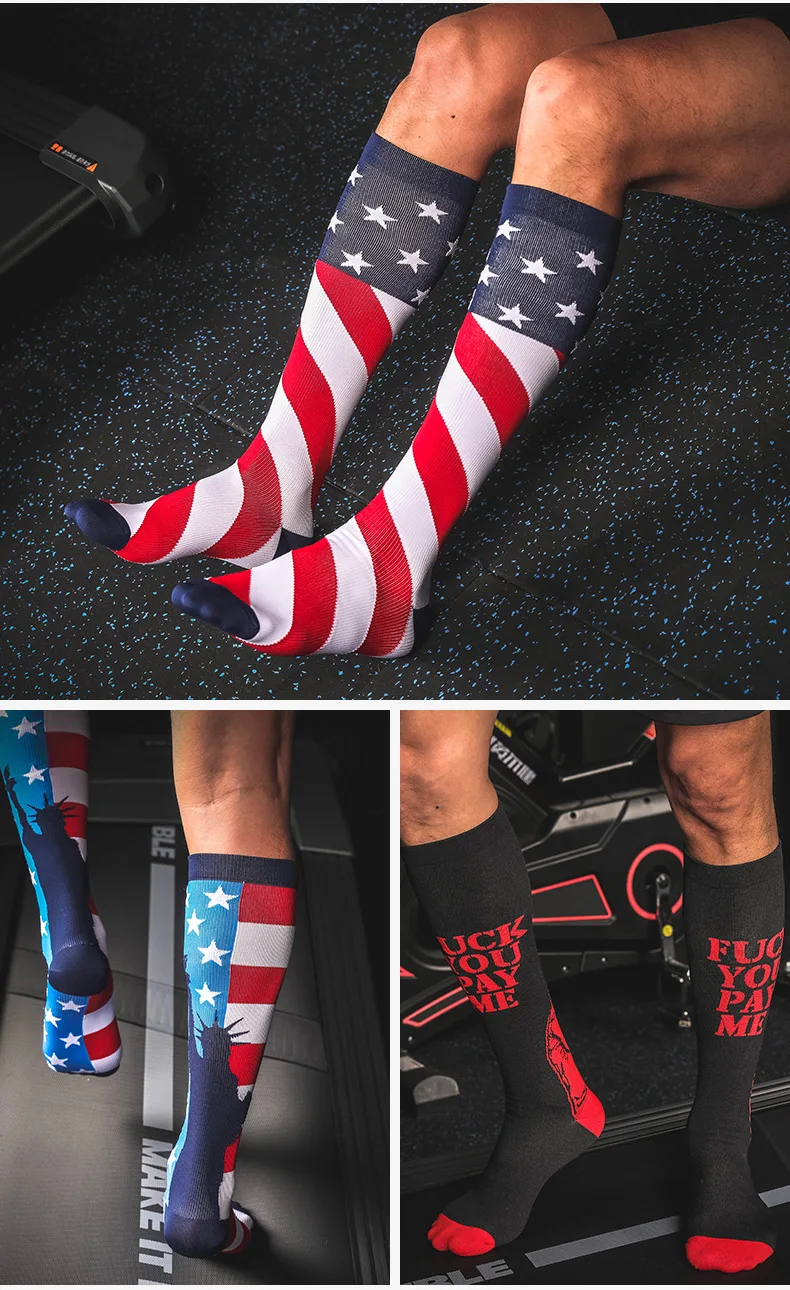 Носки компрессионные с флагом США, спортивные носки компрессионные для снятия симптомов усталости, снятия боли в коленях, предотвращения варикозного расширения вен