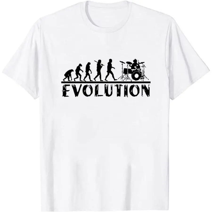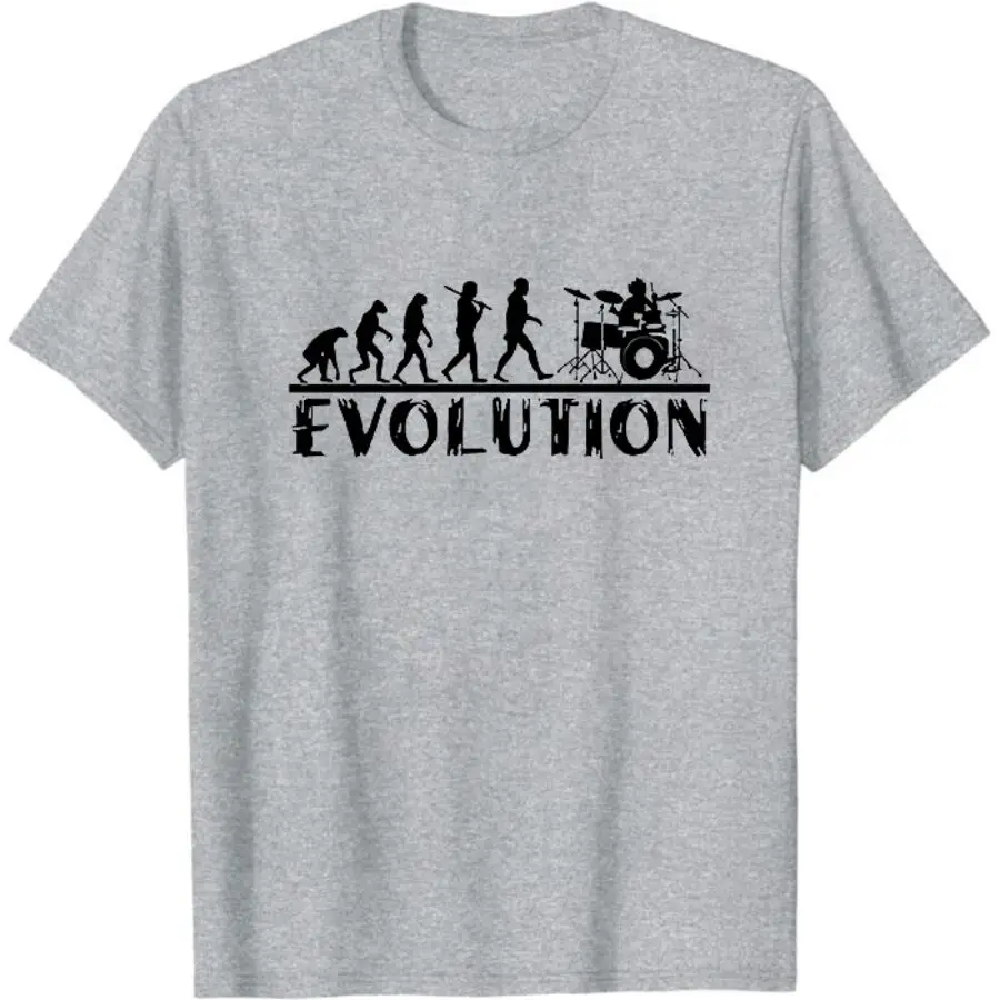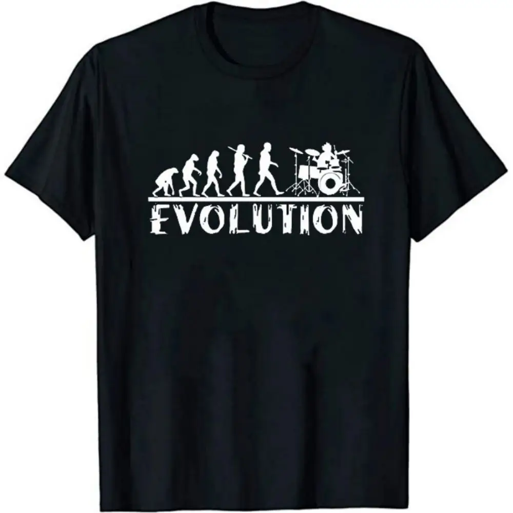 Футболка с изображением барабана, эволюции, смешная хипстерская футболка с изображением музыканта, барабана, юмора, летняя смешная футболка с изображением эволюции и короткими рукавами