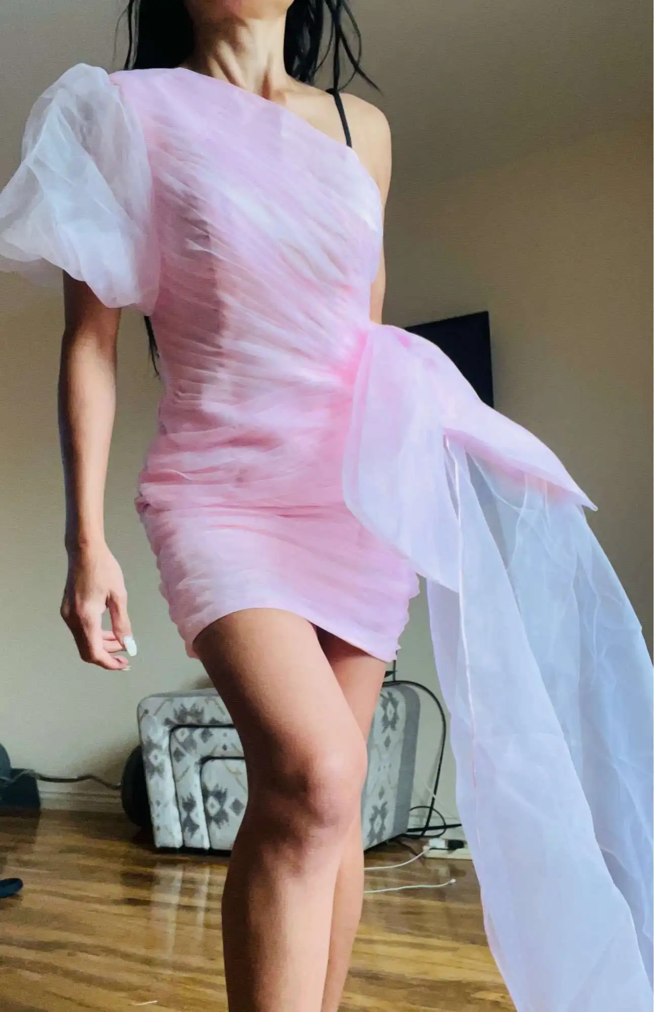 Женское вечернее платье с одним открытым плечом, из органзы