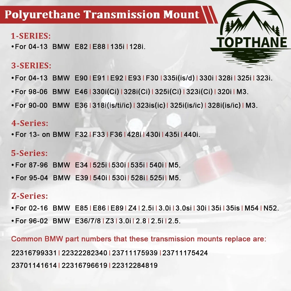 PROTHANE - Transmission Mount OEM Замена для BMW E34 E36 E39 E46 E82 E88 E90 E91 E92 E93 F22 F23 F30 F32 F33 F36 F80 F82 F83 Z3