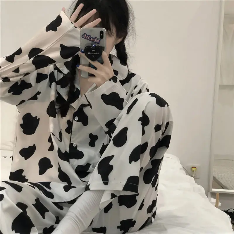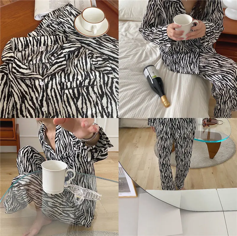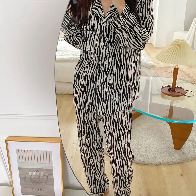 2021i пижамы для женщин с длинным рукавом Весна и Осень Зебра Полосатая Повседневная Женская Осенняя Свободная Домашняя одежда из двух предметов