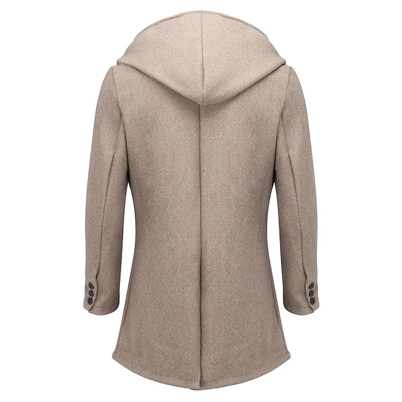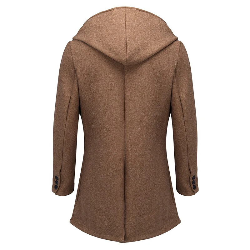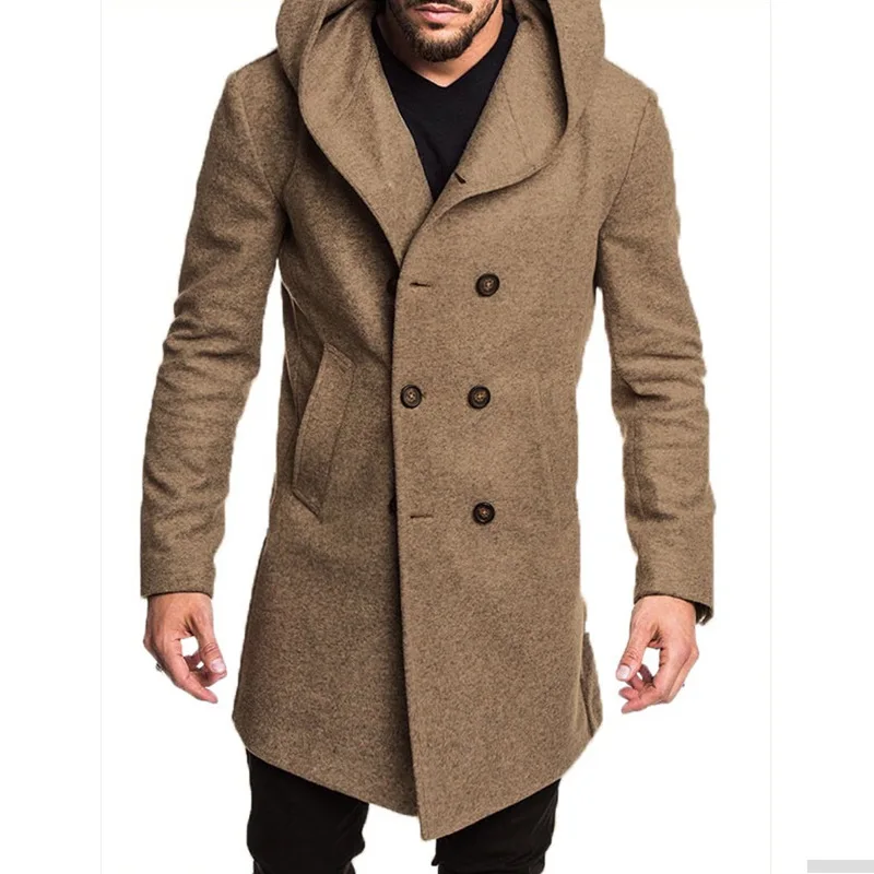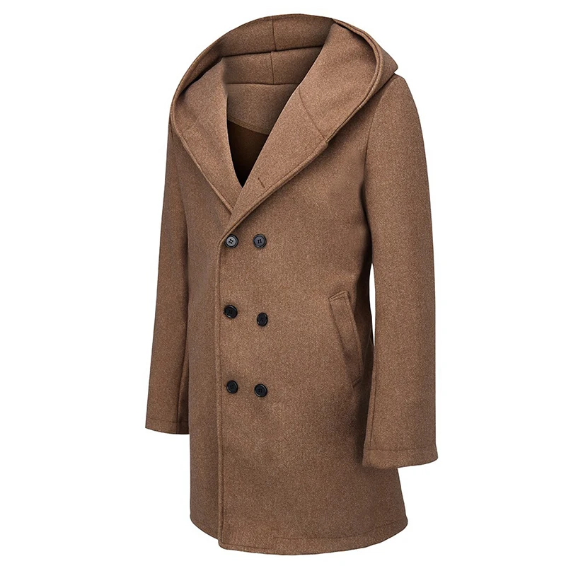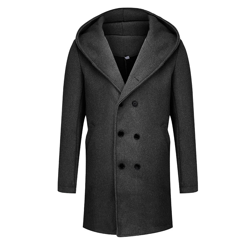 Мужское двубортное шерстяное пальто средней длины с капюшоном, модное повседневное молодежное теплое качественное свободное шерстяное пальто, зимняя куртка 2021
