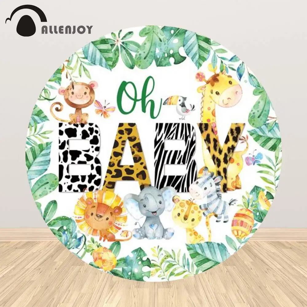 Фон для детских фотографий Allenjoy с изображением джунглей и животных дикой природы, для вечеринки в стиле сафари год, круглая скатерть