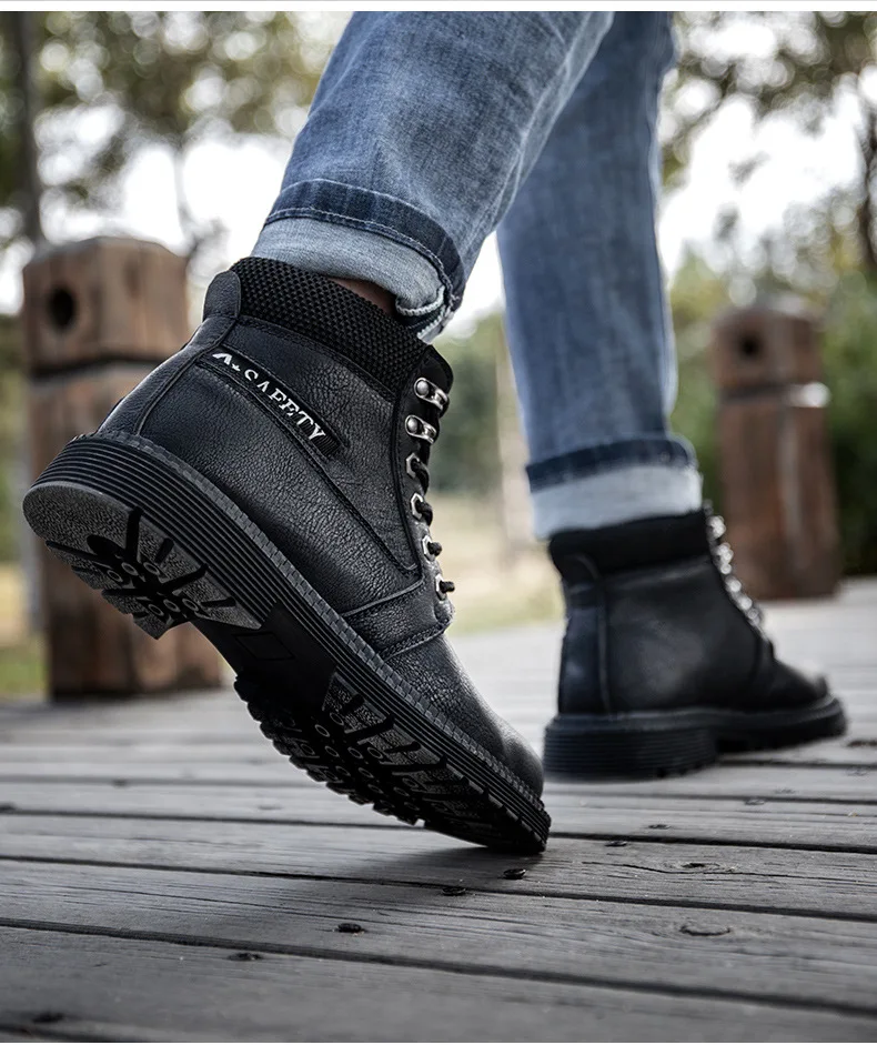 Мужские зимние ботинки, кожаная обувь, мужские рабочие ботинки, обу...