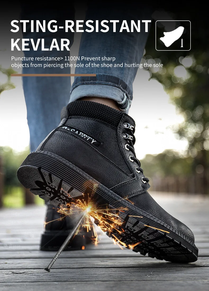 Ботинки мужские рабочие, кожаная защитная обувь, непробиваемые Боти...