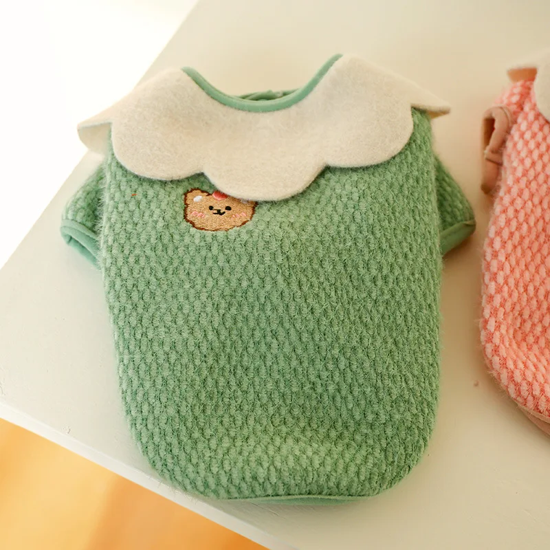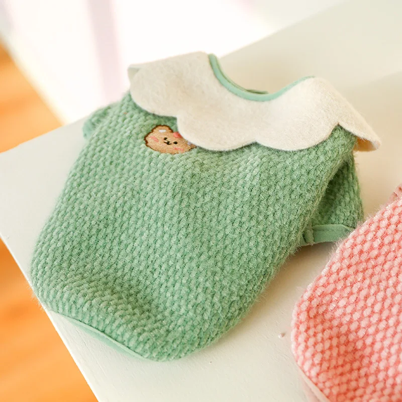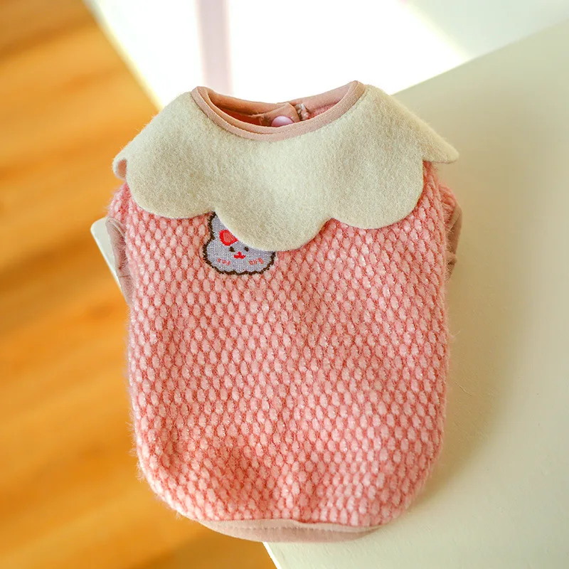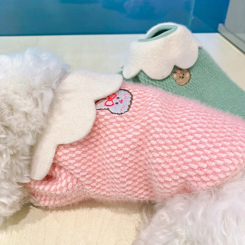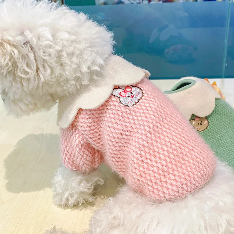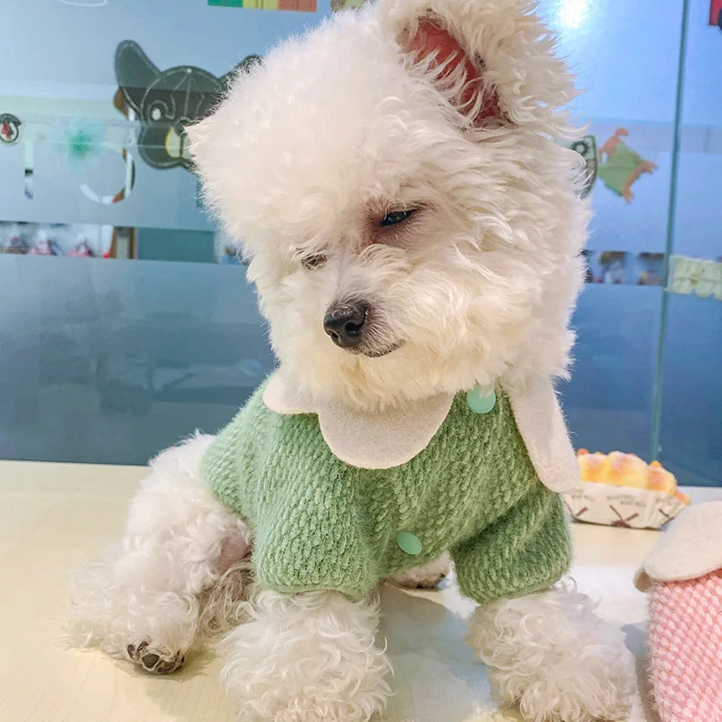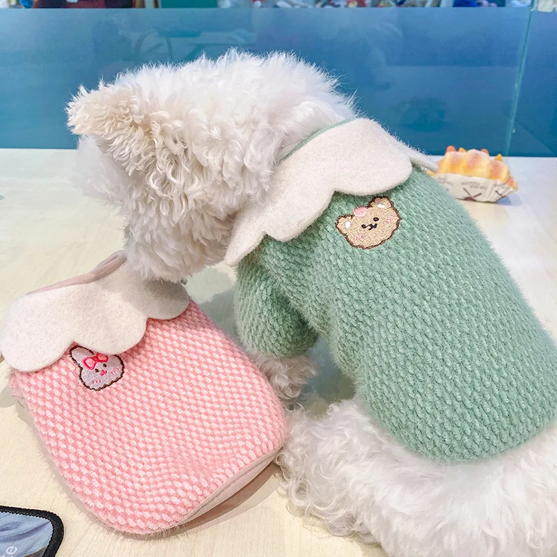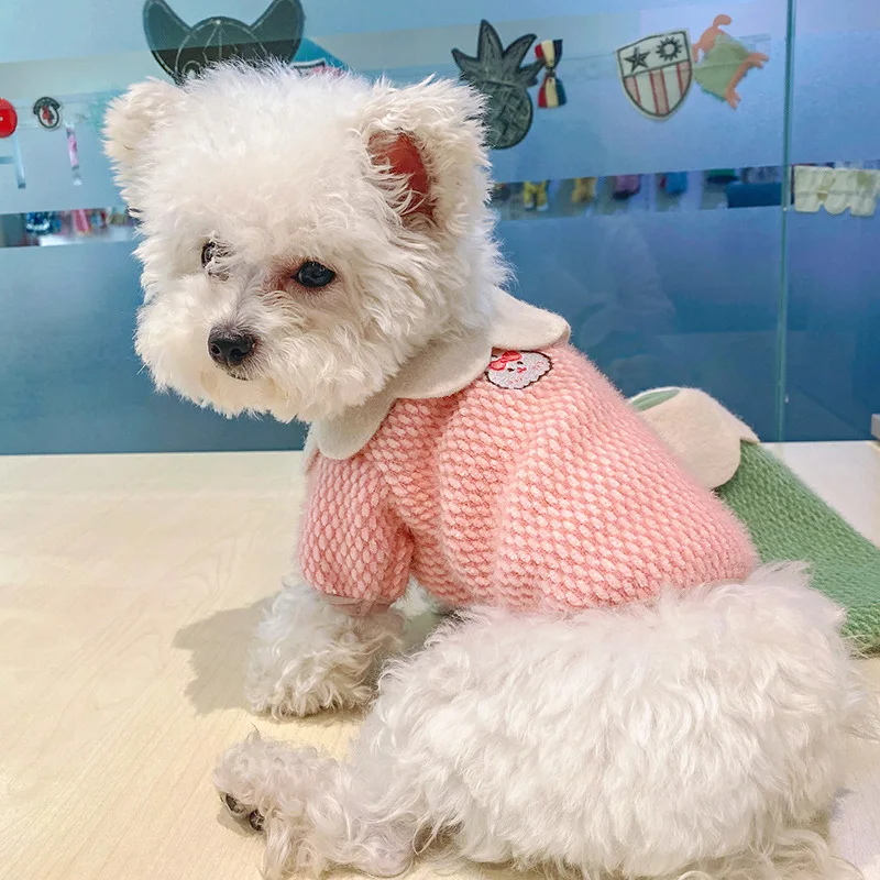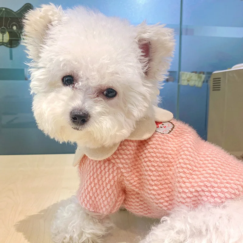 Зимняя одежда для домашних животных, теплый плюшевый свитер, пальто с лепестками, одежда для собак, карманный свитер с галстуком-бабочкой для маленьких собак, одежда для костюмированной вечеринки