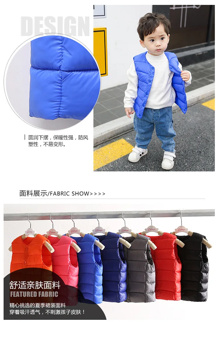 Зимние Детские жилеты; Теплые жилеты для мальчиков и девочек; Плотные пуховые жилеты для малышей; Детская куртка без рукавов; Верхняя одежда; Одежда для малышей