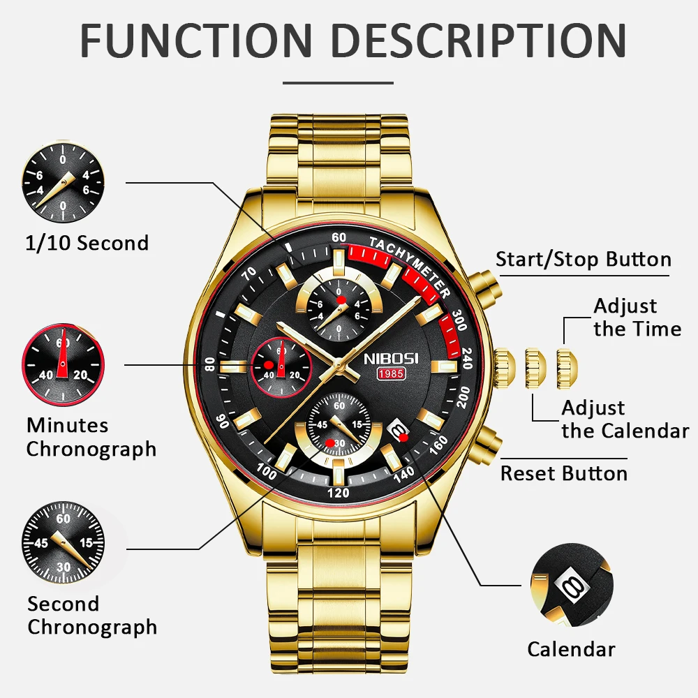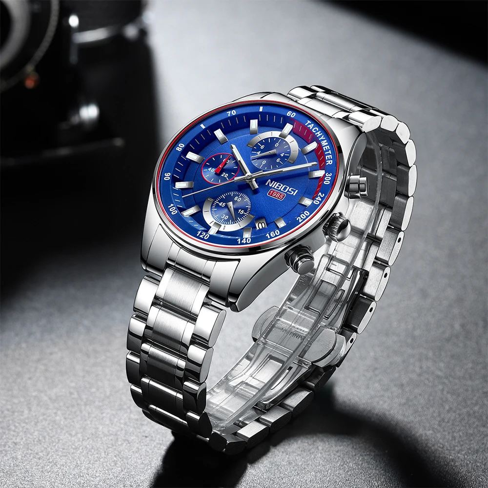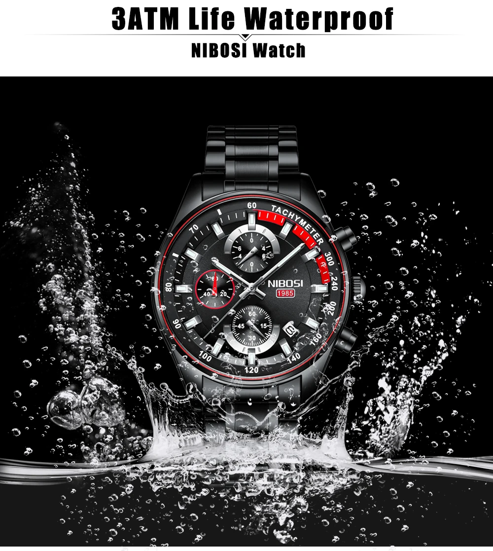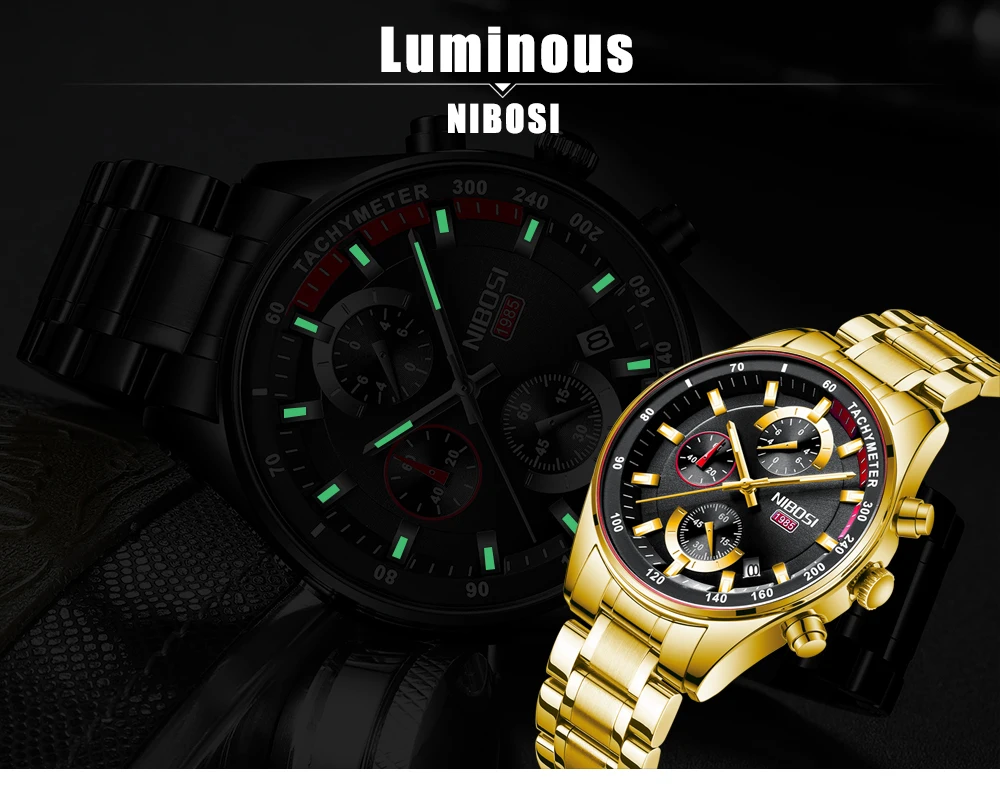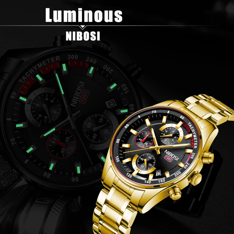 Лидер продаж, модные мужские наручные часы NIBOSI, роскошные Брендовые спортивные водонепроницаемые светящиеся часы с хронографом для мужчин, мужские часы