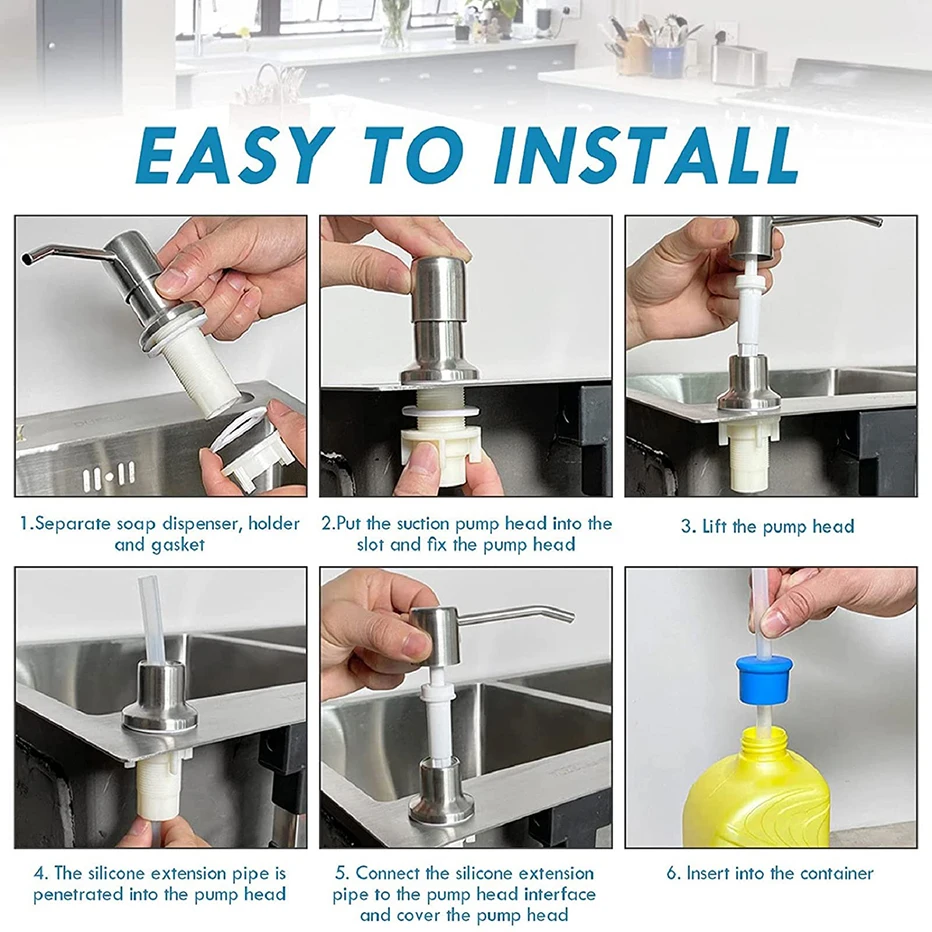 Кухонный дозатор для жидкого мыла, удлинительная трубка, черная раковина из нержавеющей стали, встроенный насос для жидкости, дозатор для удлинения ванной комнаты