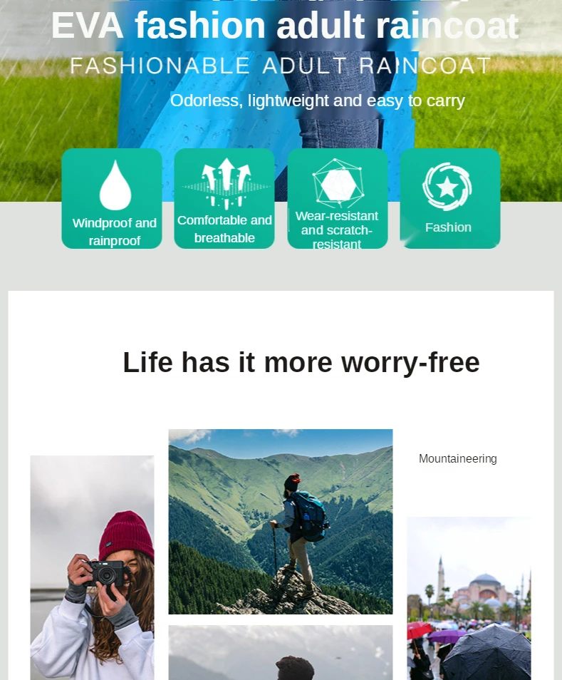 Плотный неодноразовый дождевик для взрослых от производителя оптом Портативный Модный дождевик для путешествий на открытом воздухе Eva Многоцветный дождевик