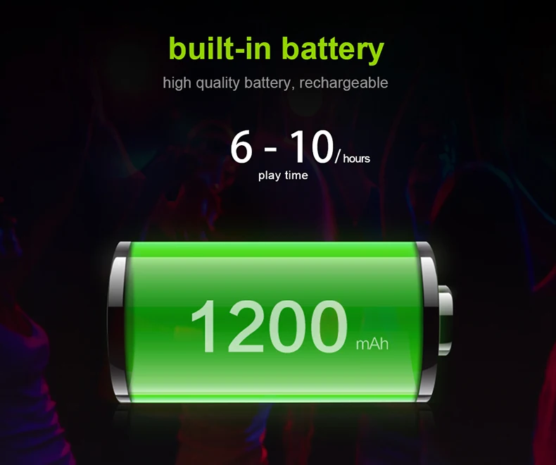 11. Аккумулятор емкостью 1200 мАч до 10 часов воспроизведения при 2/3 громкости при полной зарядке.