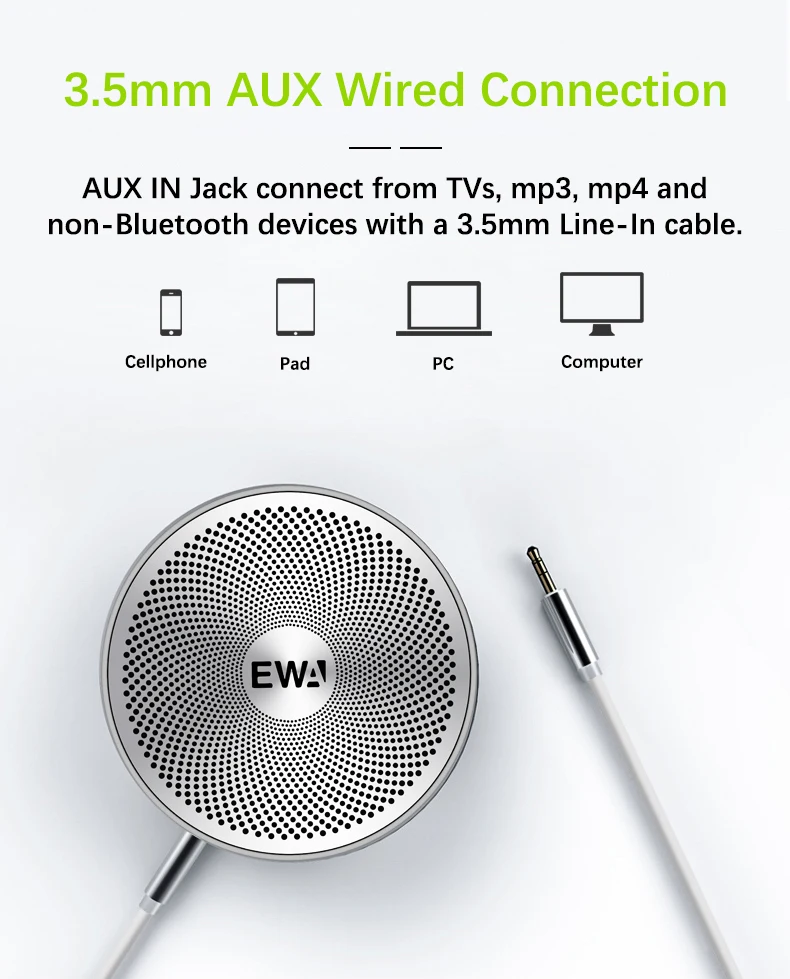 8. Поддержка AUX, Подключайтесь к любому 3,5 мм Джек аудио устройств, таких, как мобильные телефоны, MP3, MP4, ноутбук, компьютер и т. д.