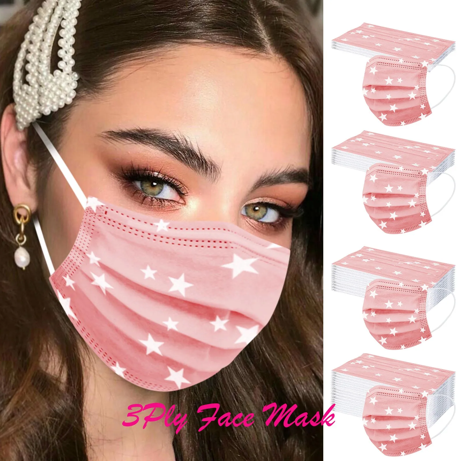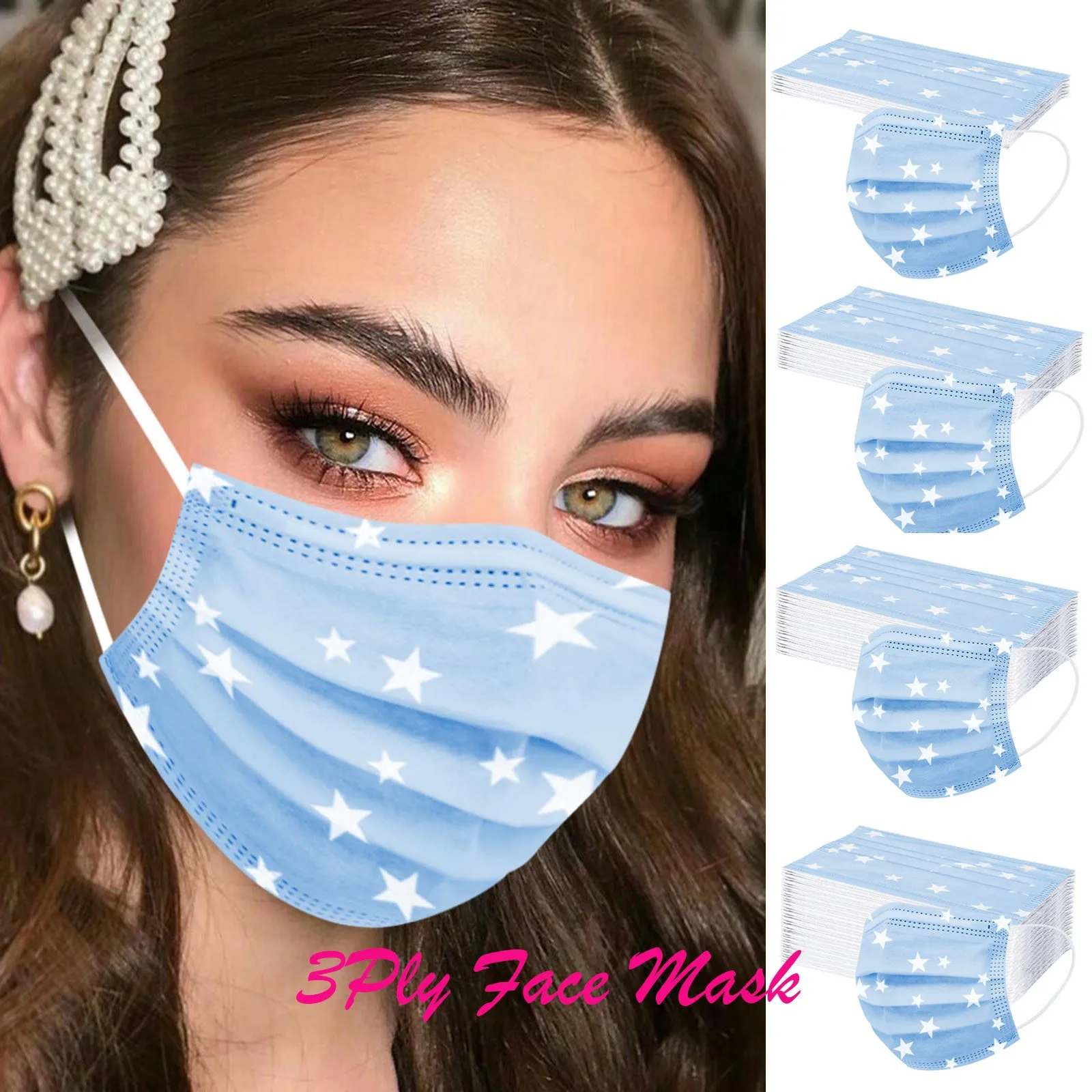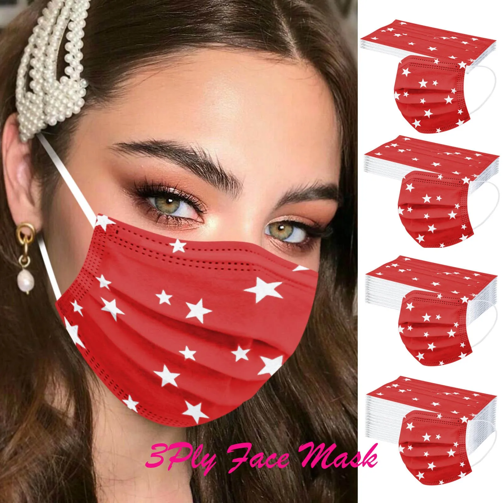 Маска унисекс одноразовая для взрослых, с принтом пятиконечной звез...