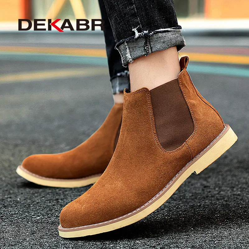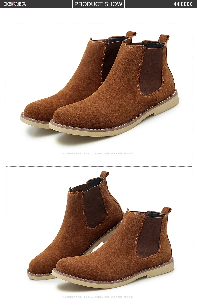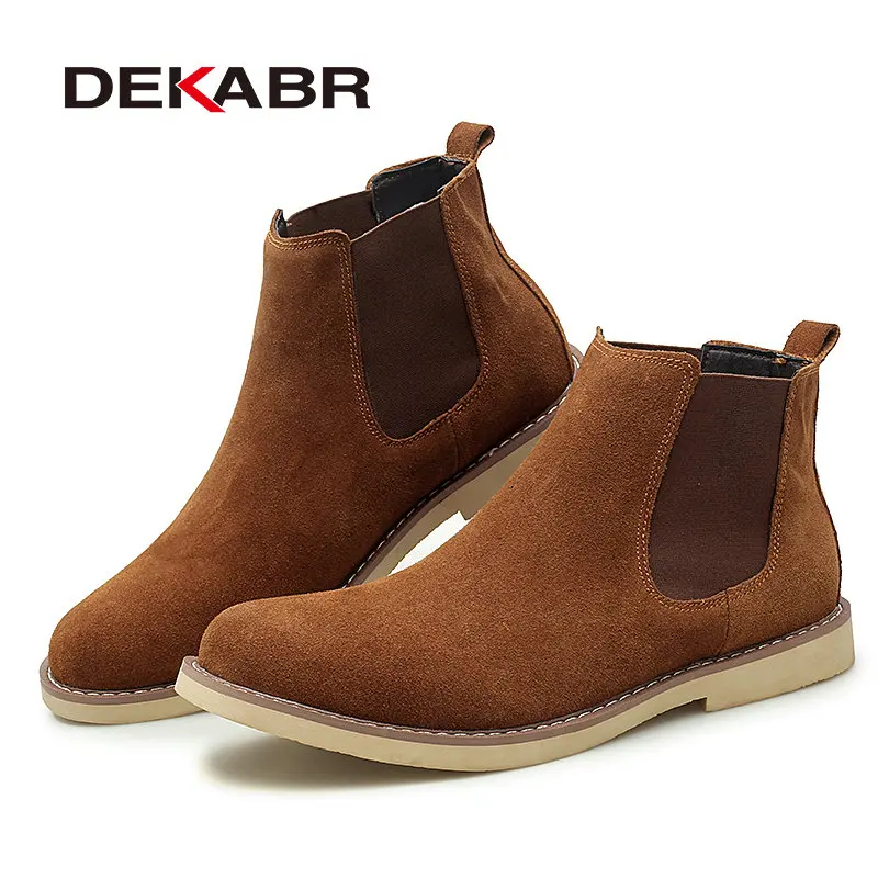 DEKABRНовинка; Мужские ботинки челси из коровьей замши; Модные теплые зимние ботинки; Мотоботы; Ботильоны в винтажном стиле; Повседневная обувь без шнуровки