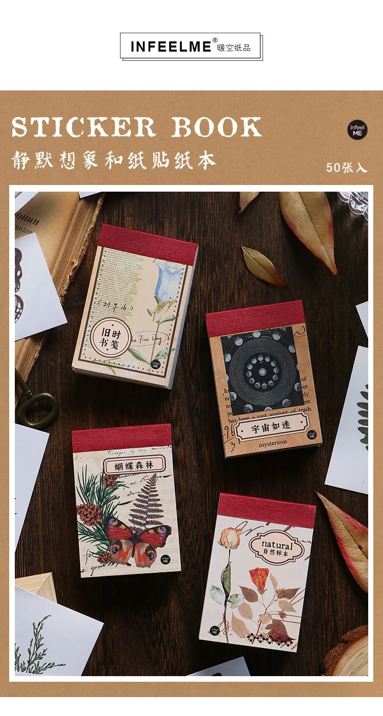 50 шт.книжка декоративные бумажные стикеры С Рисунком бабочки и лес...