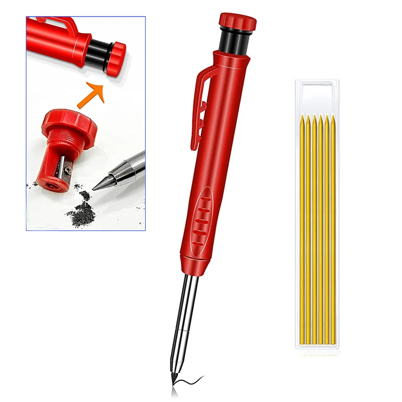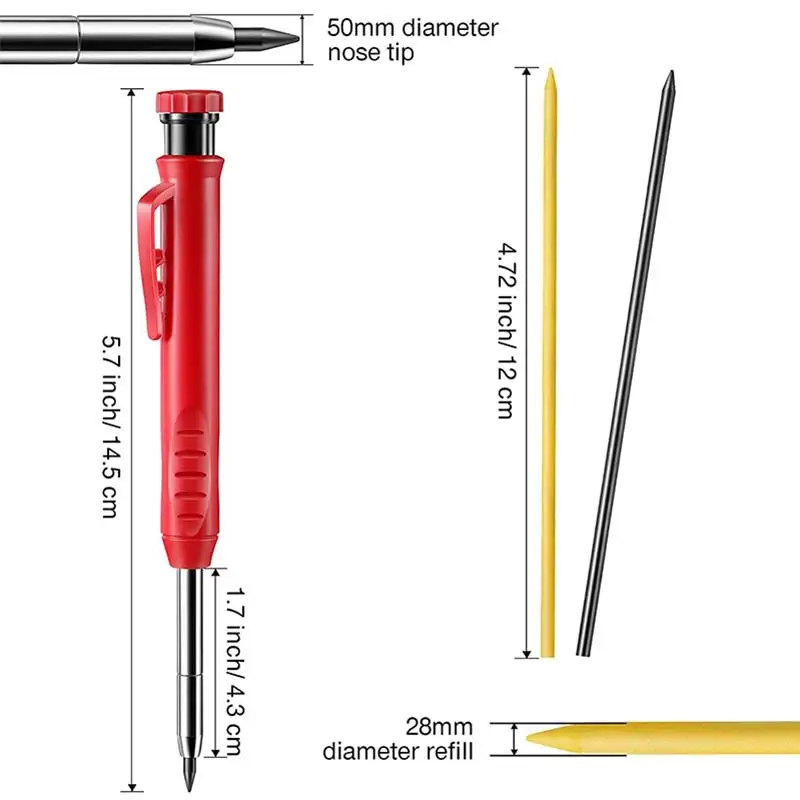 1. Карандаш для плотника с глубоким отверстием разработан с удлиненным и игольчатым кончиком 45 мм в длину, достигая труднодоступных мест, где другие маркер плотника не идут, подходит для маркировки через отверстия или в других плотных областях