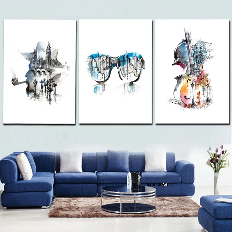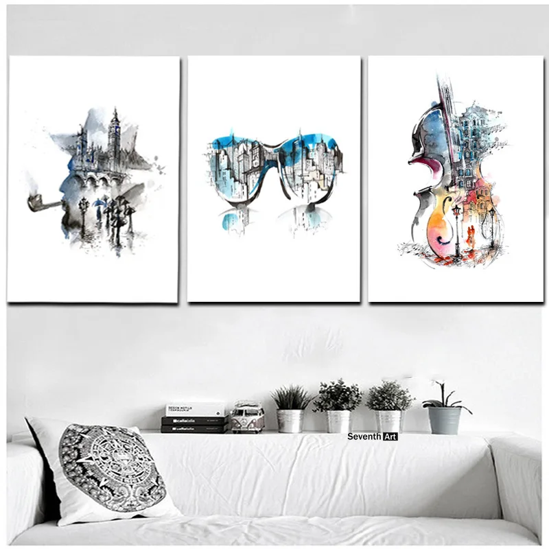 Абстрактная скрипка, Акварельные картины Холмса, очки, скрипка, настенная живопись, музыкальный холст, постер для декора гостиной