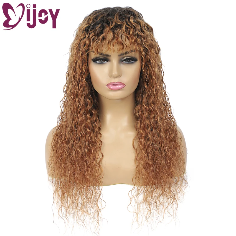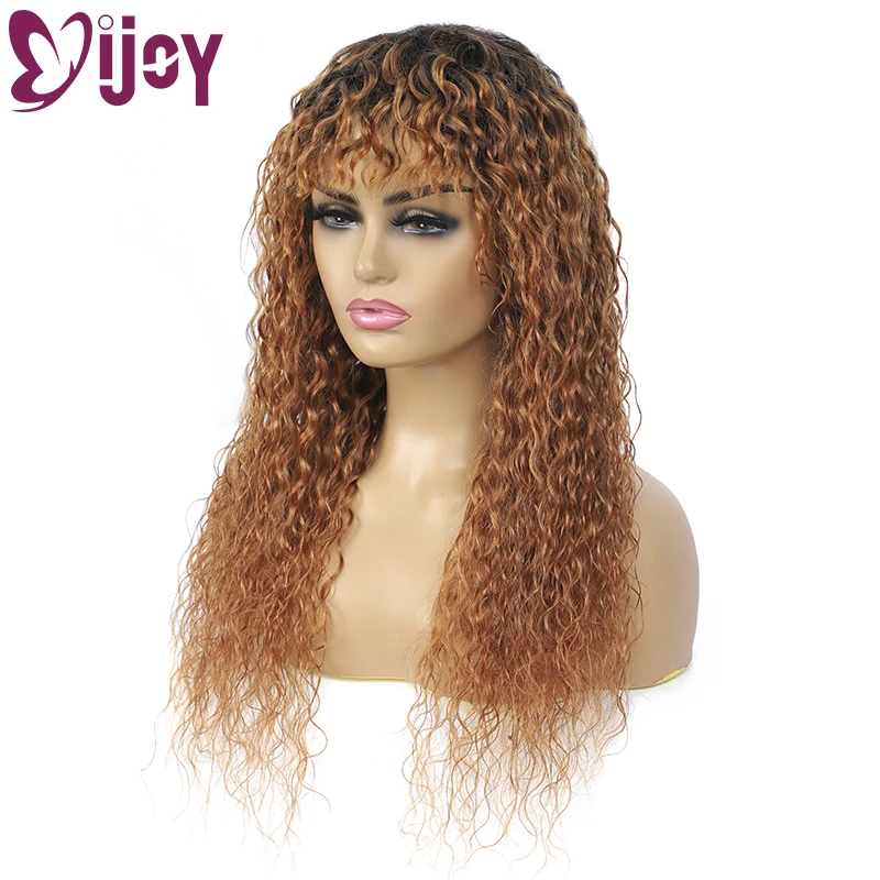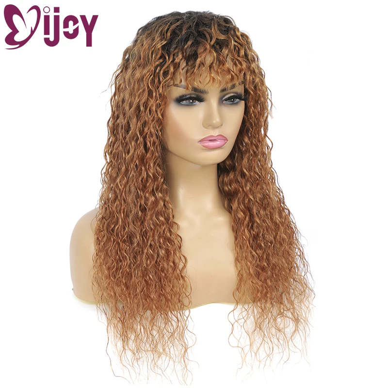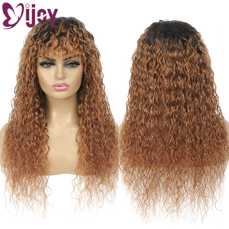 Парик с коричневыми волнистыми волосами Омбре, парики из натуральных бразильских человеческих волос с челкой, парик без повреждений, парик для чернокожих женщин IJOY