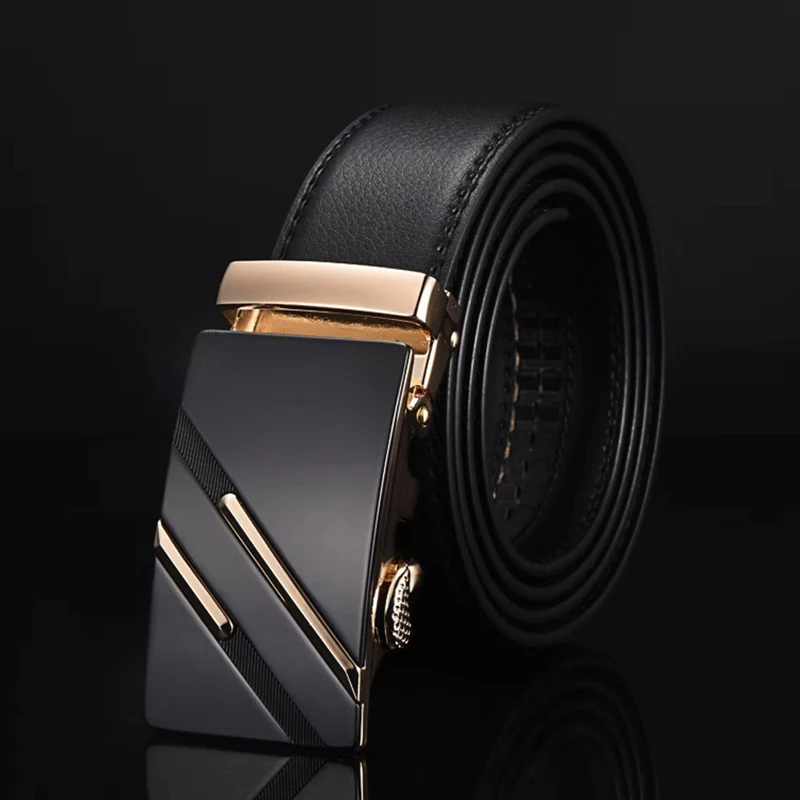 Мужской ремень из натуральной кожи, с автоматической металлической пряжкой