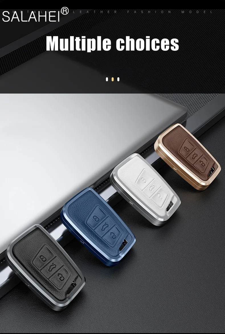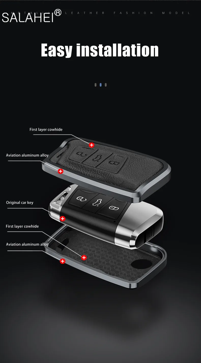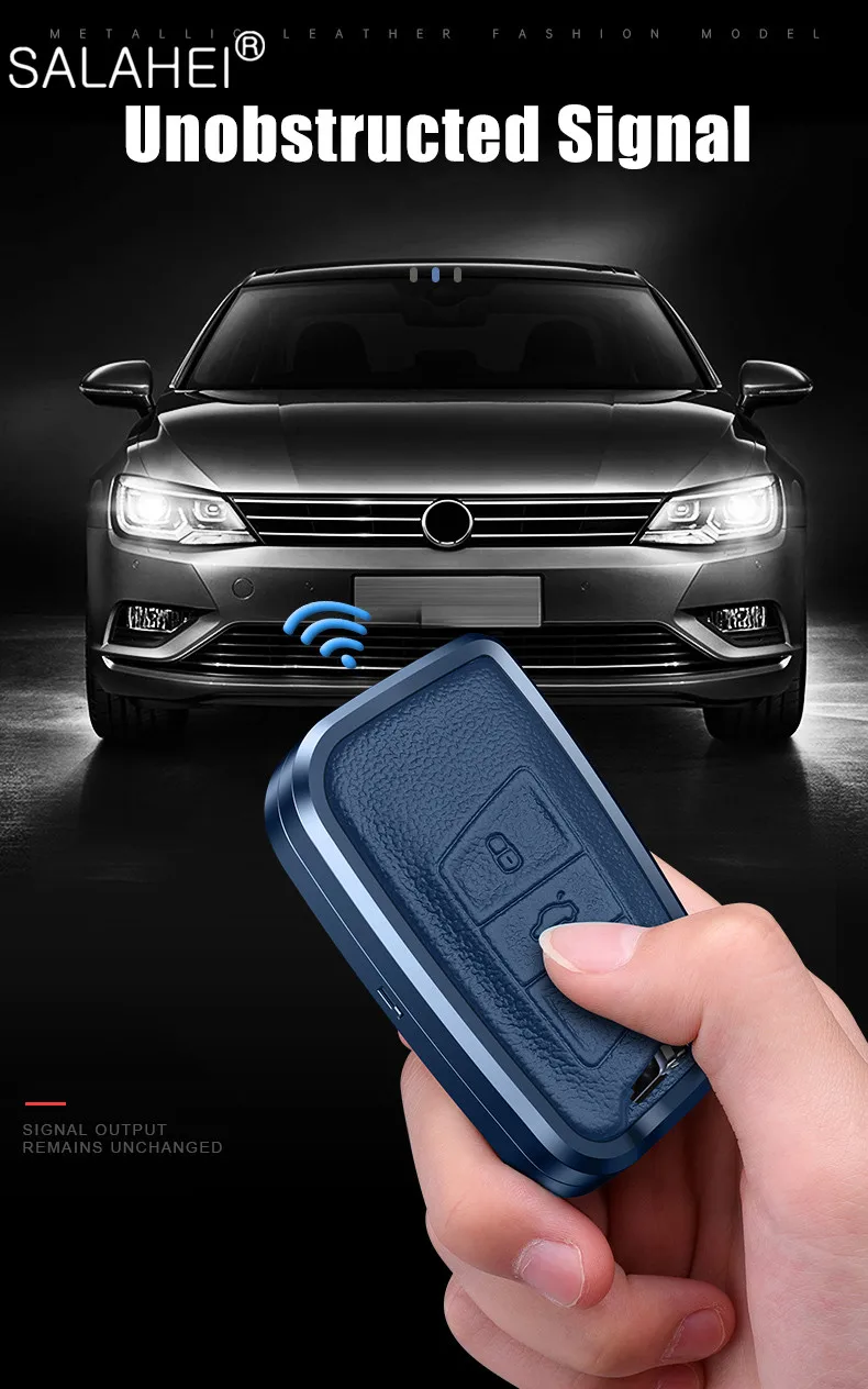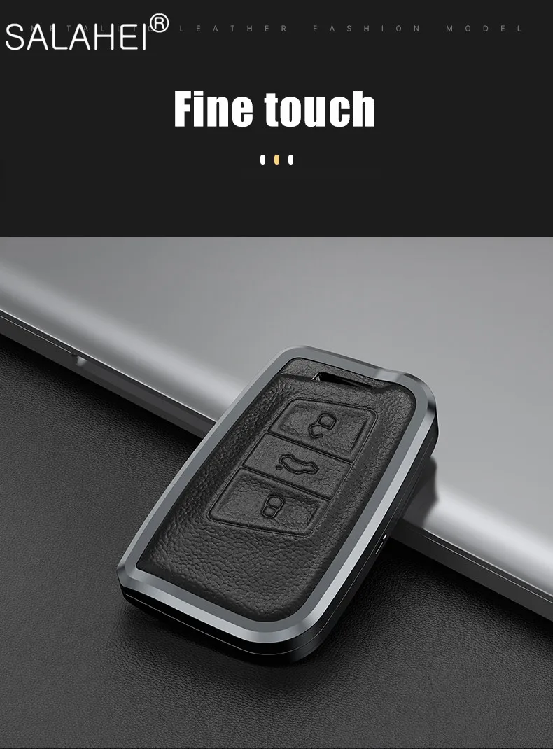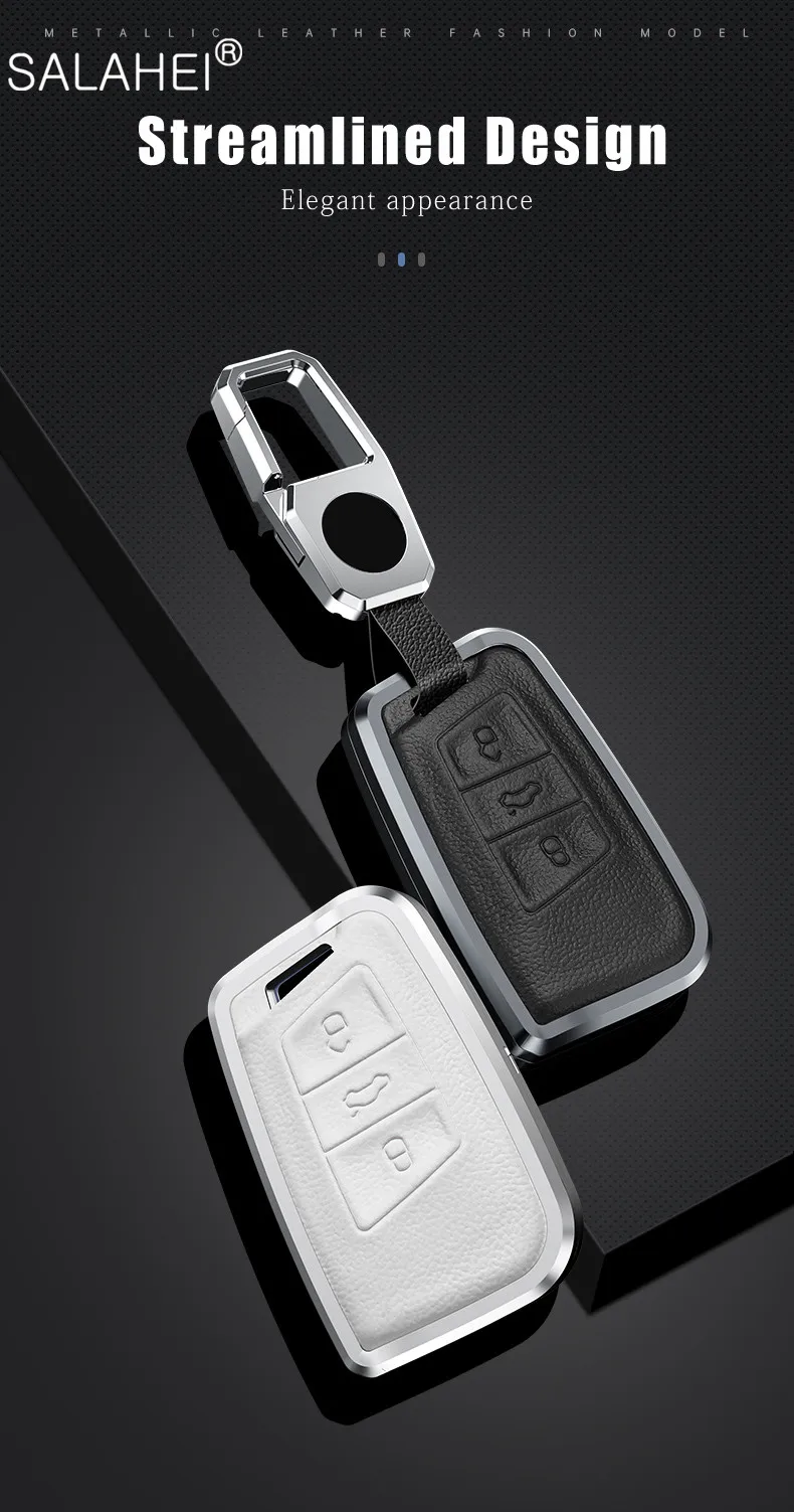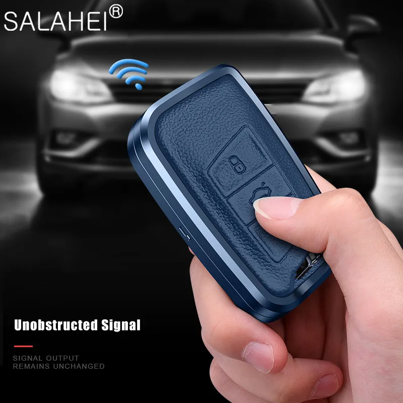 Чехол для автомобильного ключа из алюминиевого сплава и кожи, чехол для Volkswagen VW Magotan Passat B8 Golf, Skoda Kodiaq Superb A7, защита