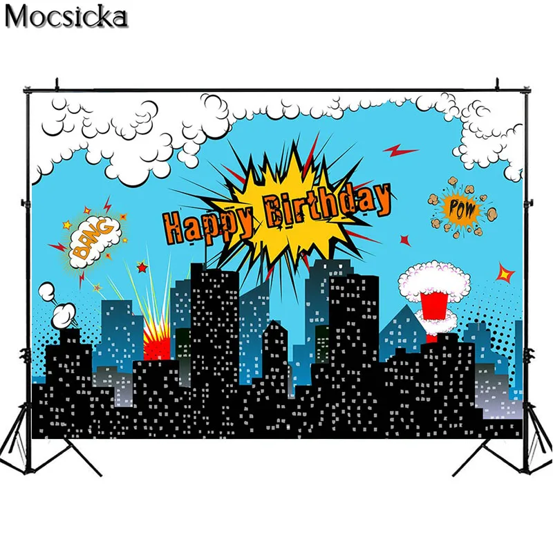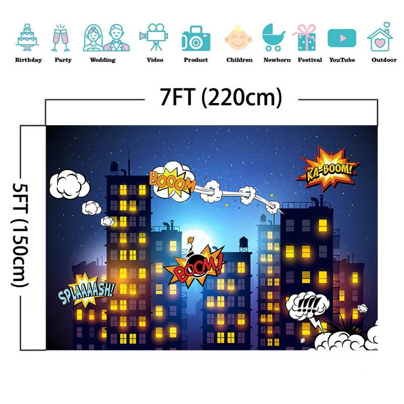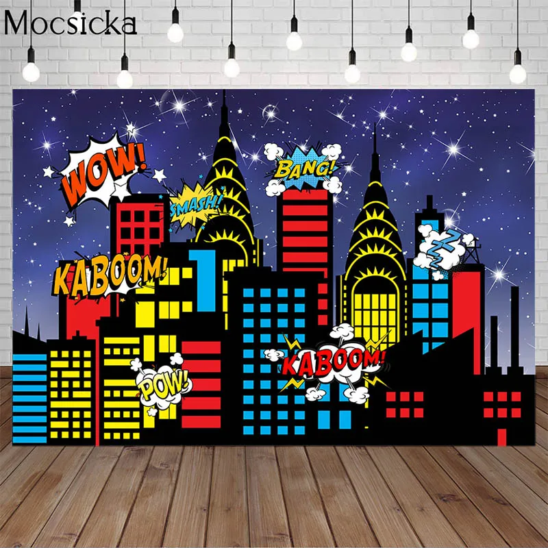 Супергерой ночной город здание фотография Фон ребенок день рождения мультфильм новорожденный торт разбивать фон фото студия Фотофон