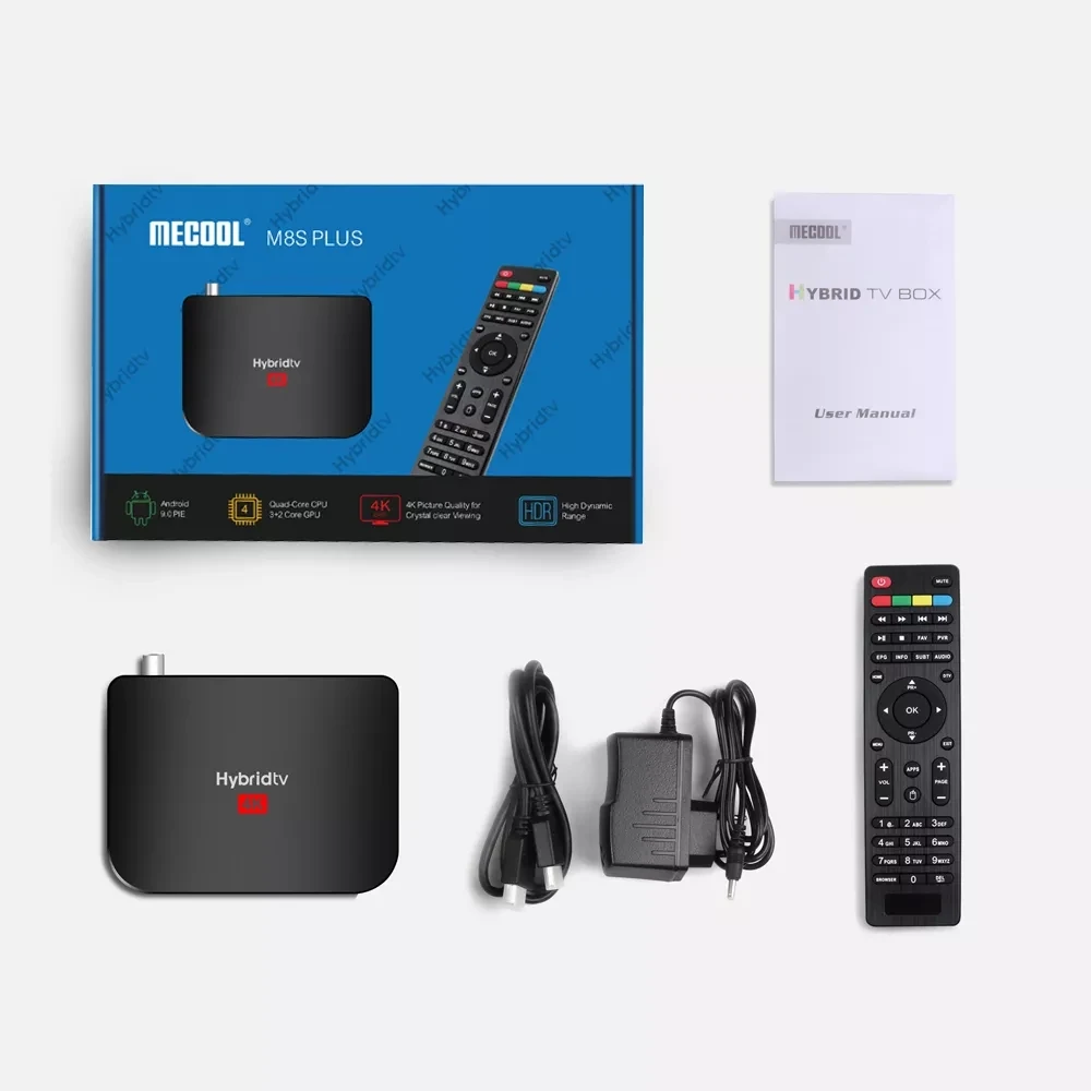 -1 x M8S PLUS T2 Hybridtv Box-1 пульт дистанционного управления-Источник питания (5 В/2 а)-1 шт.-Кабель HD-1 шт.-Руководство пользователя-1 шт.