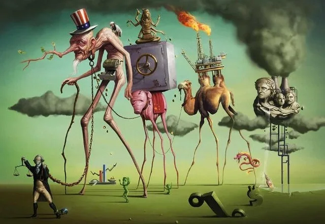 Картина на холсте, с абстрактным изображением золотых денег, для го...