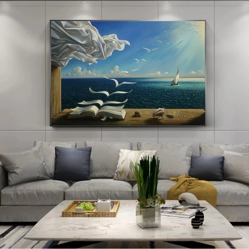 Сальвадор Дали масляная живопись волны книга парусник настенные кар...