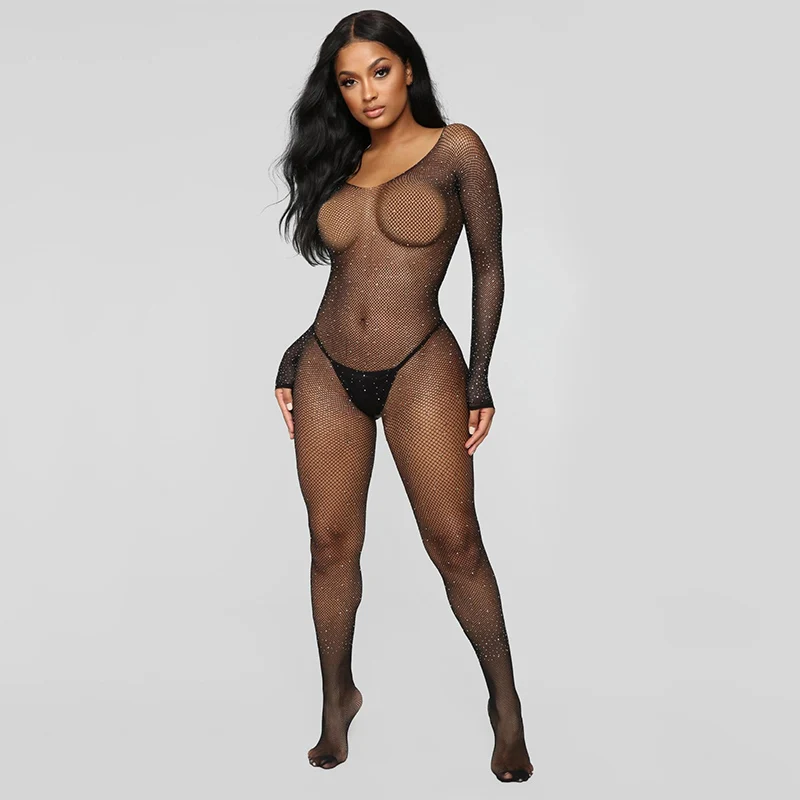 Женские сексуальные колготки в сеточку, стразы, длинные-рукава трик...