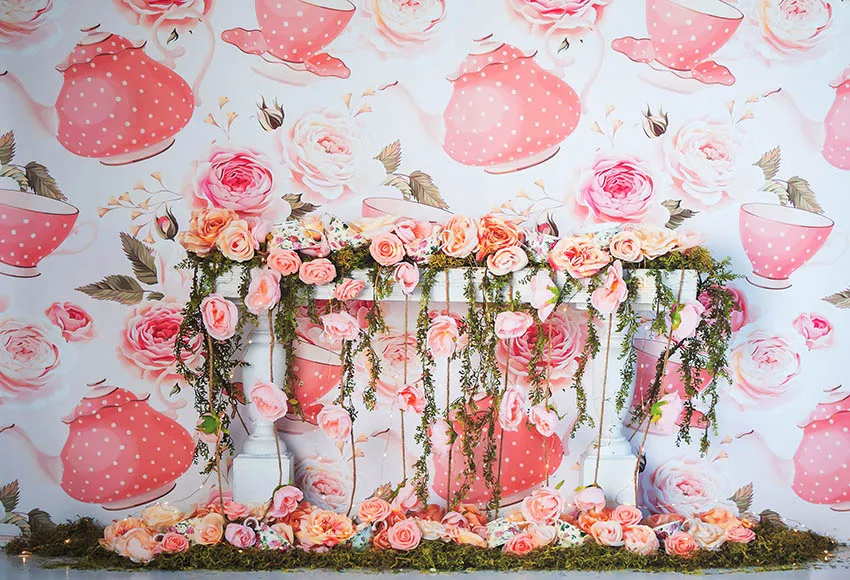 Фон для фотографий Mehofond с изображением розового чая для девочек