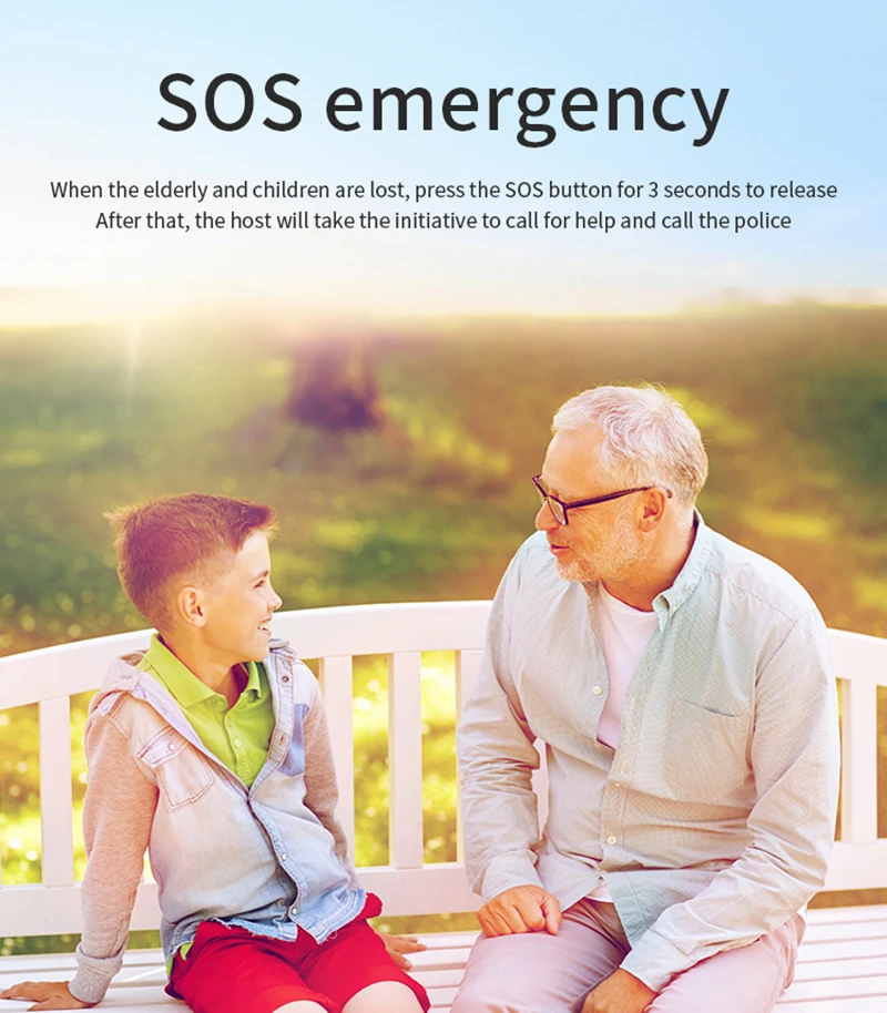 5. Одна кнопка SOS-экстренная помощь: когда люди пожилого возраста и дети теряются и сталкиваются с опасностью, нажмите кнопку SOS в течение 3 секунд и отпустите, И Хост будет активно звонить на экстренный звонок, чтобы позвонить в милицию.
