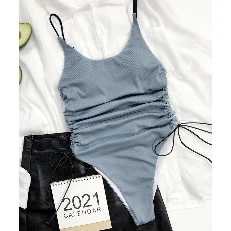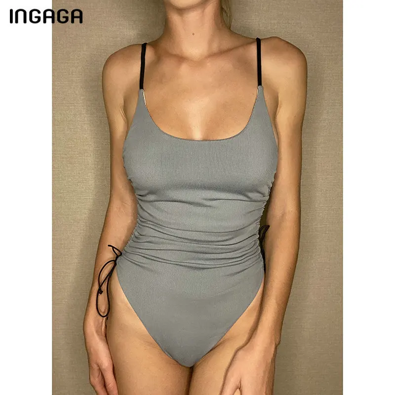 Купальник INGAGA в рубчик, Цельный купальник 2022 с высоким вырезом, боди на шнуровке, женские сексуальные однотонные купальные костюмы, летняя новая пляжная одежда