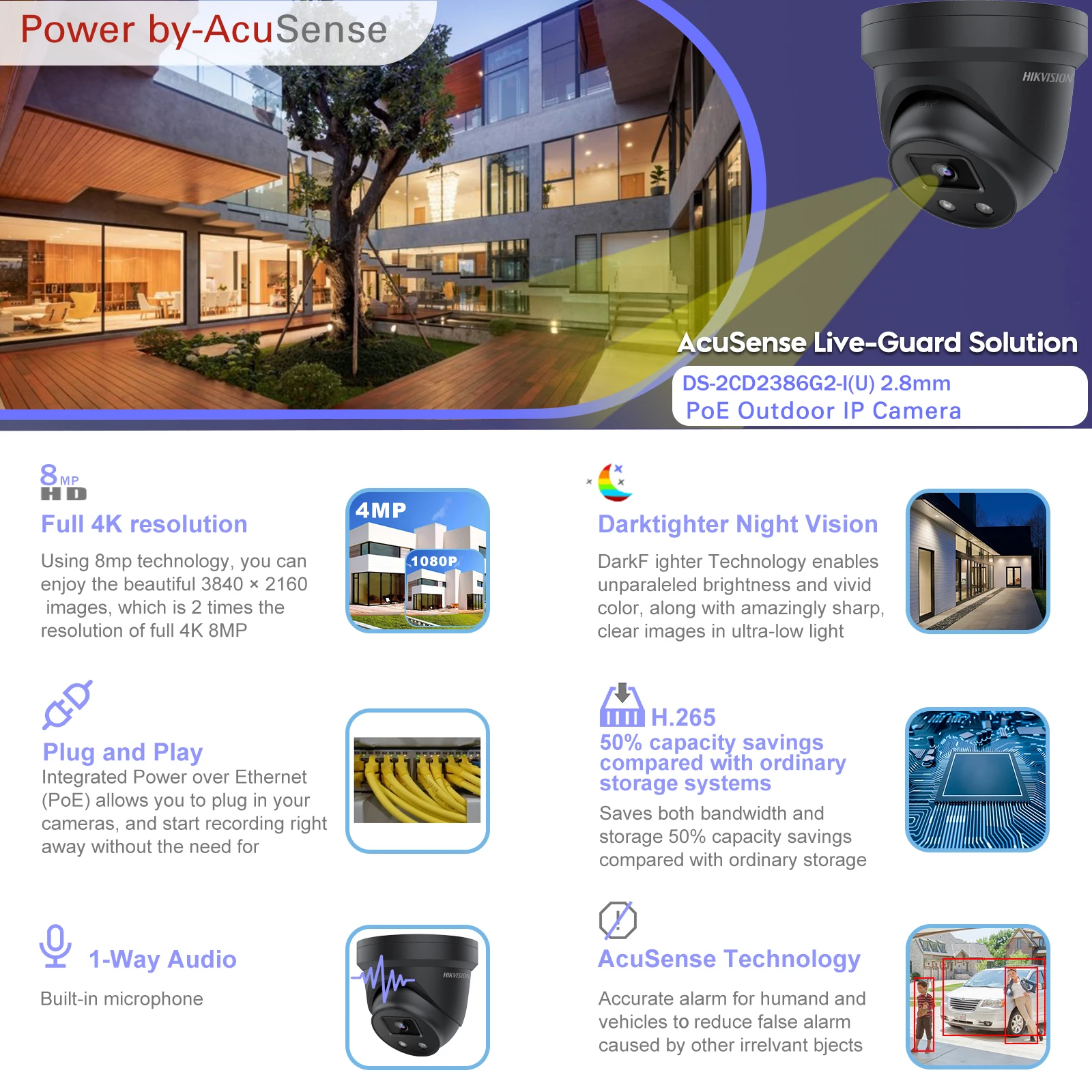 Hikvision 8MP AcuSens DS-2CD2386G2-IU наружная камера IP 4K аудио рекордер H.265 IP67 POE CCTV камера видеонаблюдения Обнаружение движения