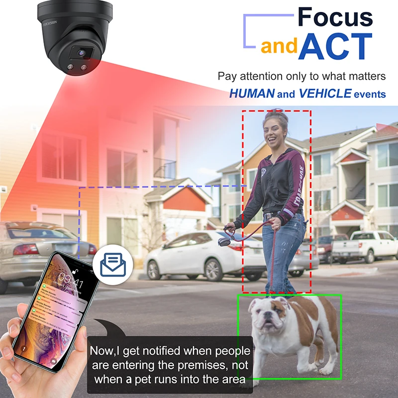 С помощью алгоритмов глубокого обучения Hikvision AcuSenseТехнология обеспечивает классификацию целей человека и транспортного средстваСигналы тревоги на передние и задние устройства. Система фокусируетсяНа мишенях человека и транспортного средства, значительно Улучшенная сигнализацияЭффективность и действенность.