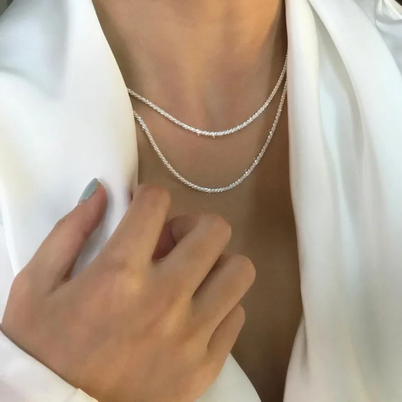 Популярное серебряное ожерелье-чокер со сверкающей цепочкой до ключиц ожерелье для женщин ювелирные изделия для свадебной вечеринки подарок на день рождения