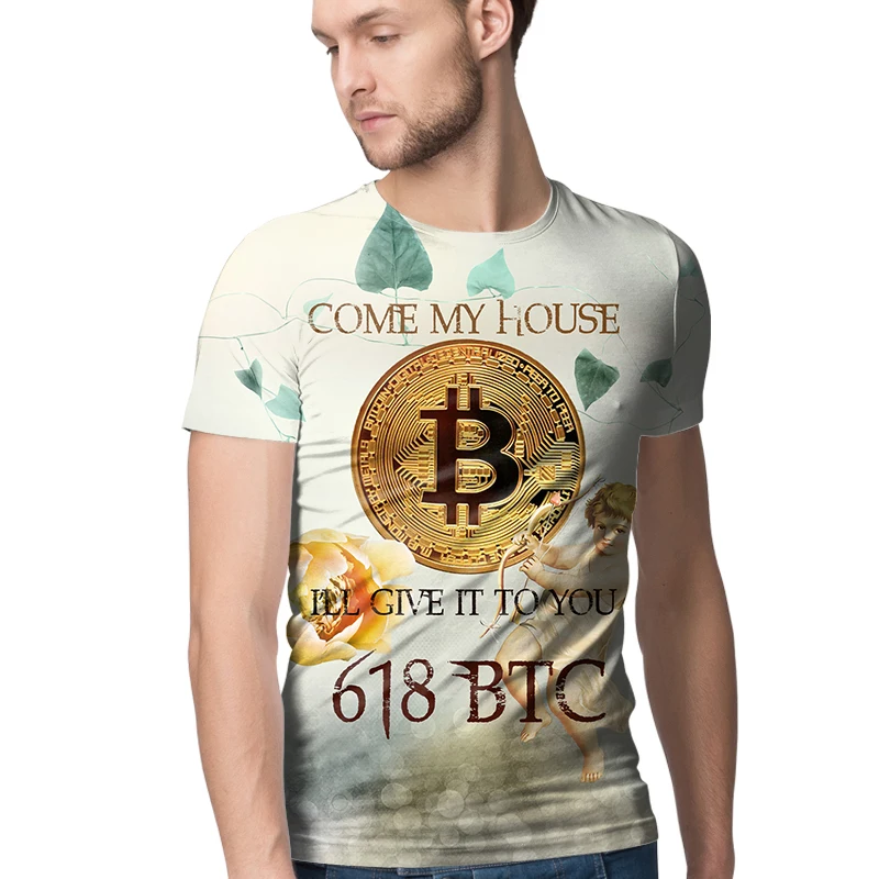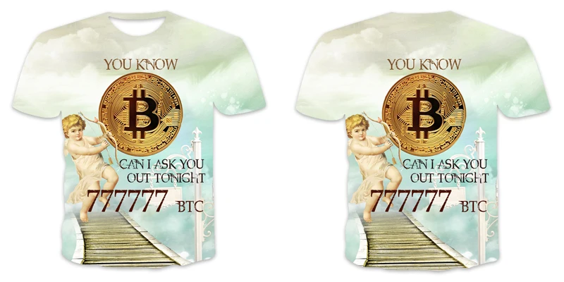 Мужская футболка с коротким рукавом, модная летняя свободная футболка с 3D принтом биткоина, приталенный пуловер с круглым вырезом, Повседневная Уличная Мужская футболка большого размера