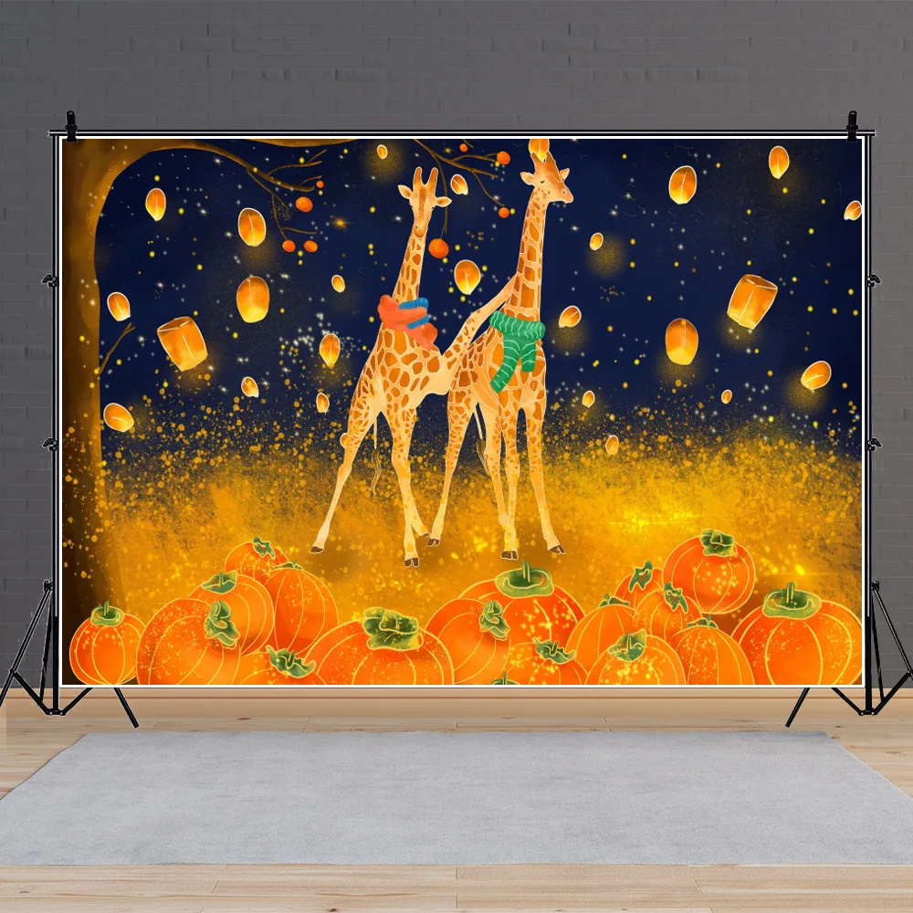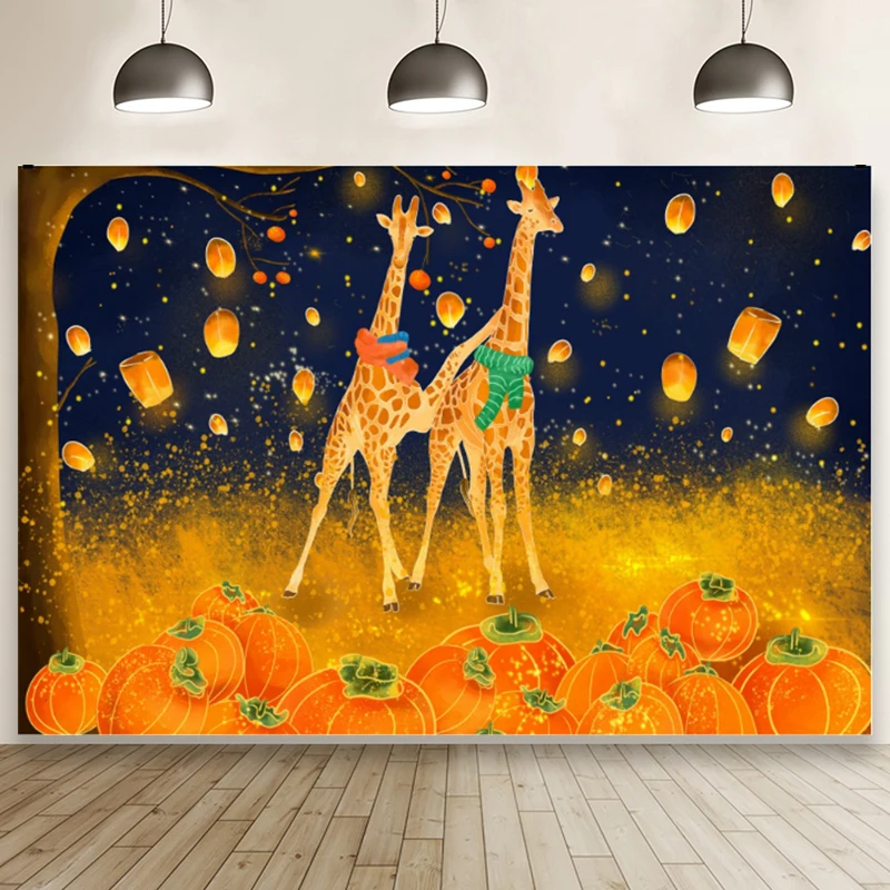 Милый жираф волшебный золотой Тыква Хэллоуин фон фестиваль Детская комната Декор плакат Фонарь Летающий синий звездное небо фон