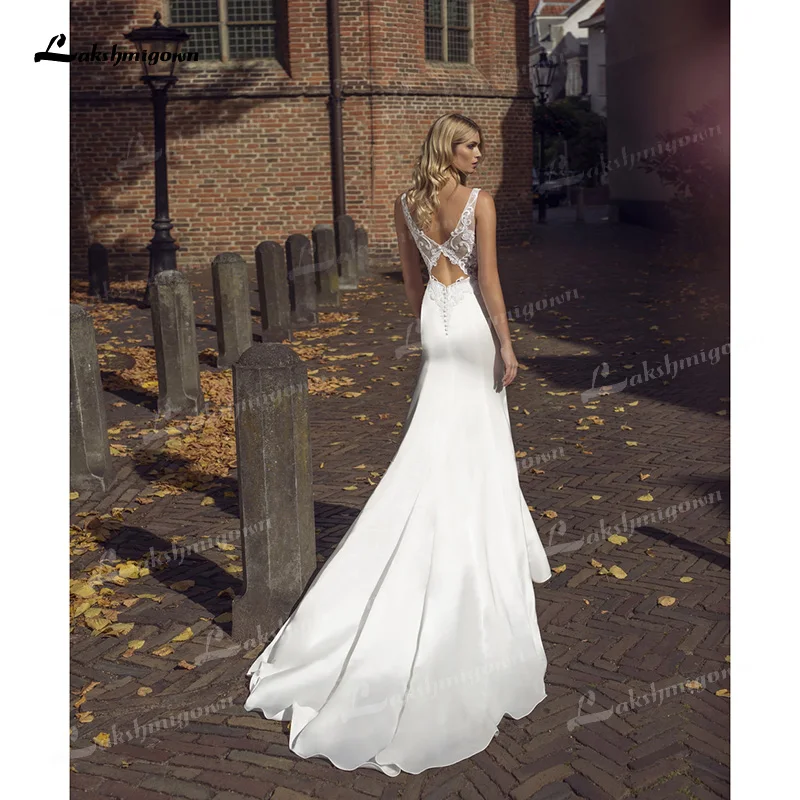 Очаровательные мягкие атласные свадебные платья-футляры, сексуальные кружевные платья с глубоким V-образным вырезом по обеим сторонам талии без рукавов, наряды невесты со шлейфом 2021